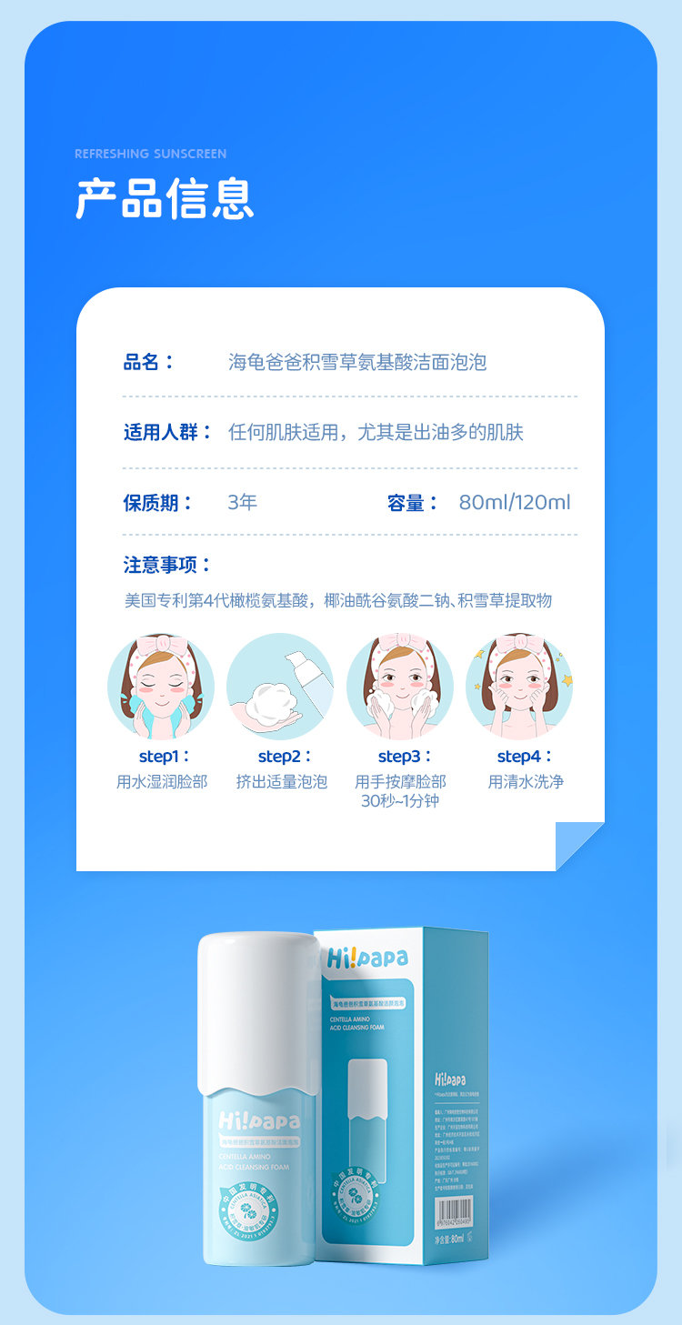 海龟爸爸积雪草氨基酸洁颜泡泡 80ml