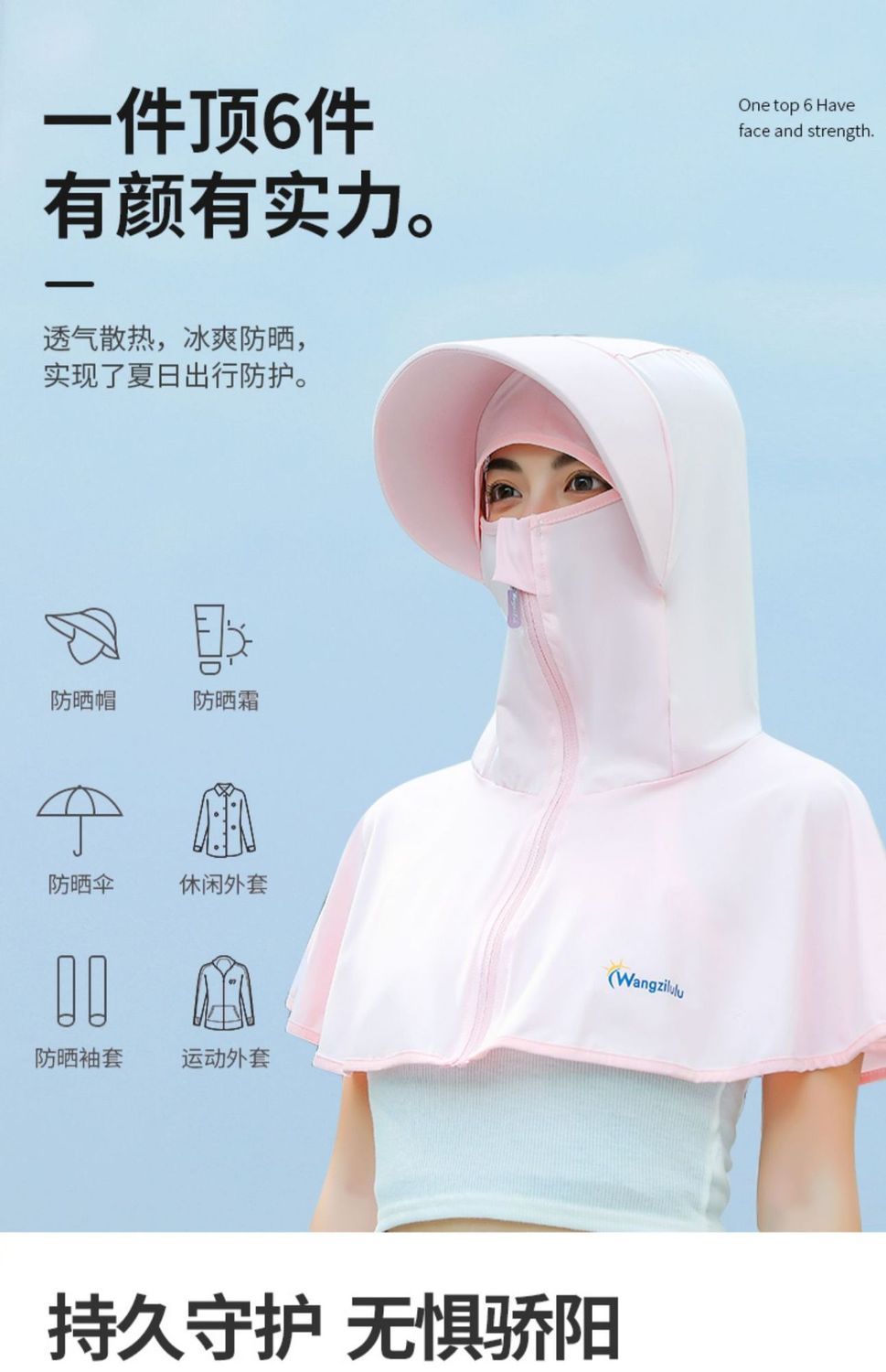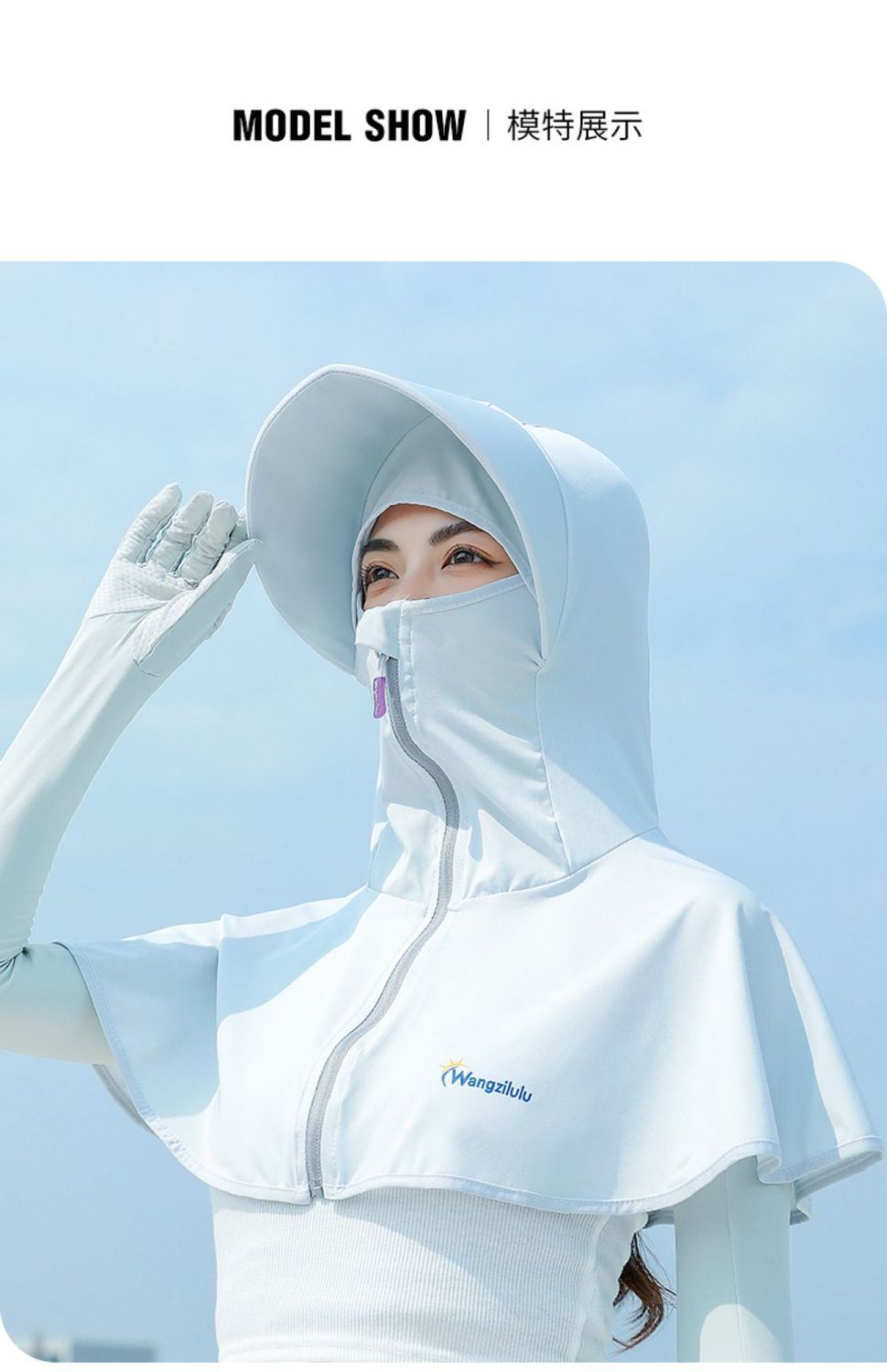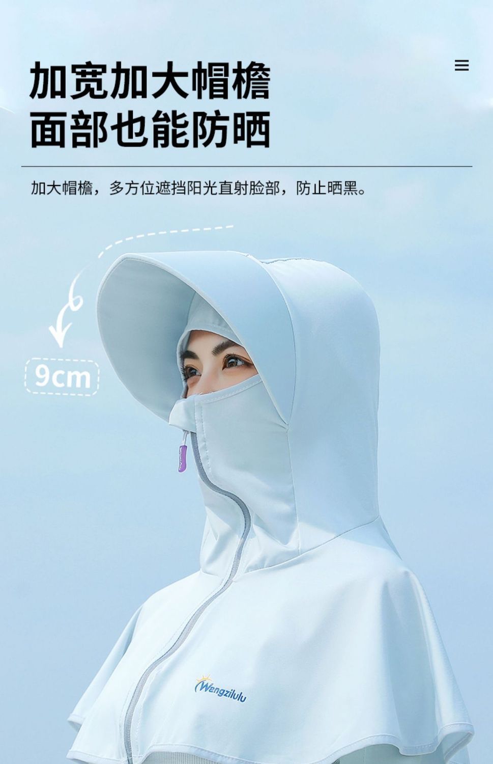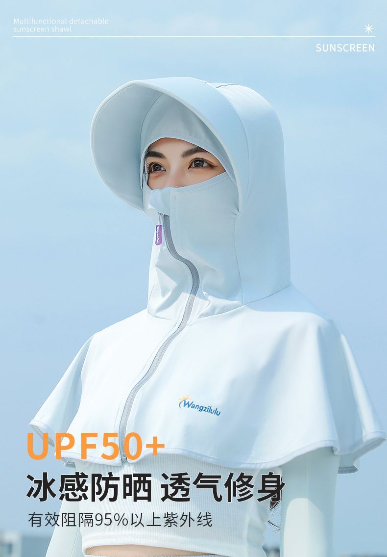 夏天女防晒衣帽披肩披风斗篷全脸面护颈开车防紫外线UPF50+