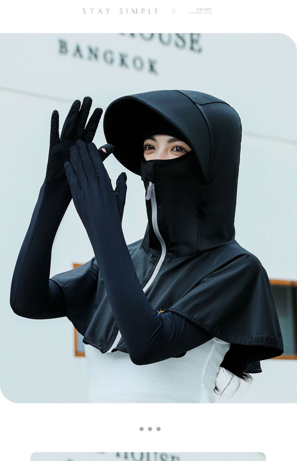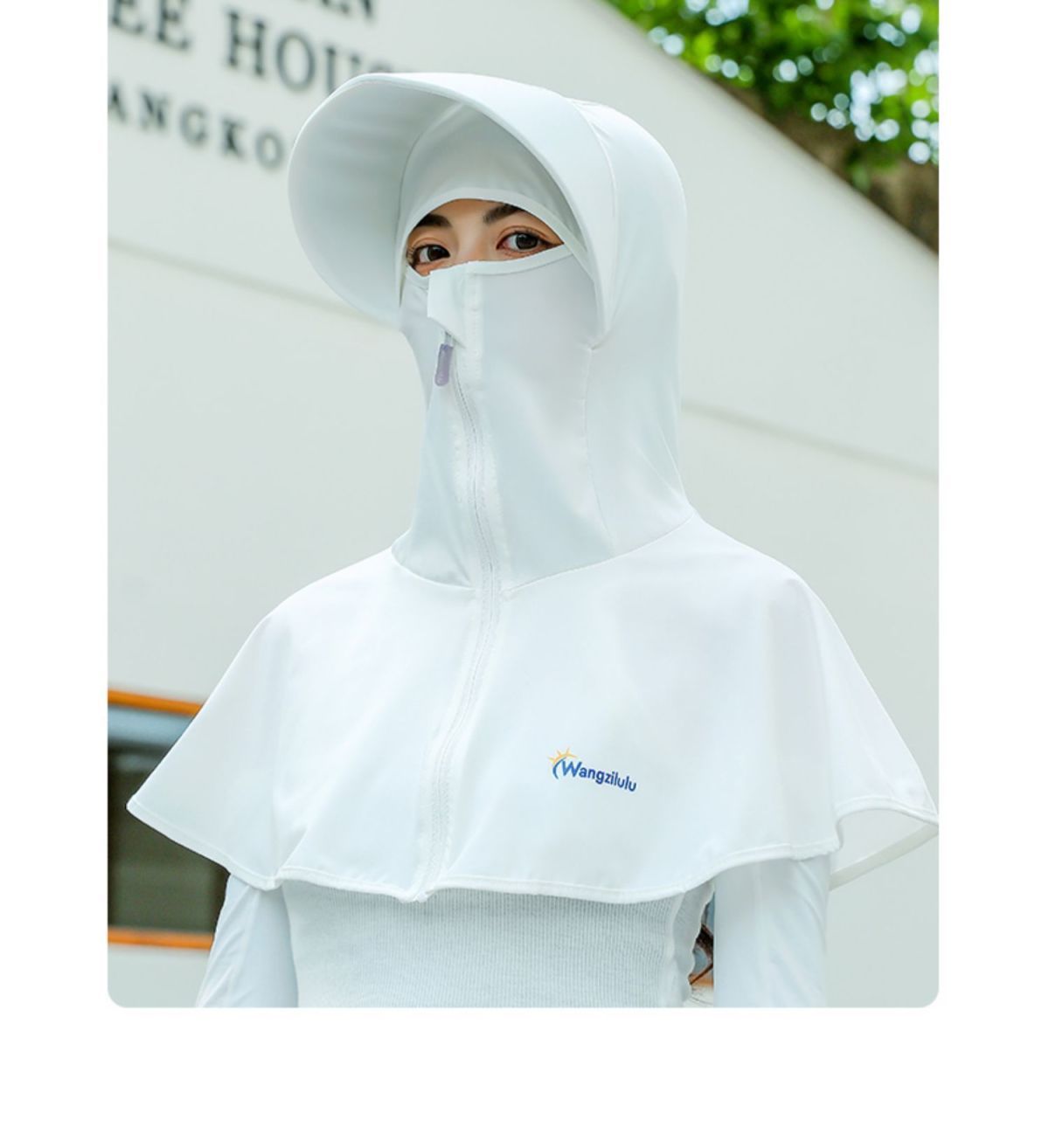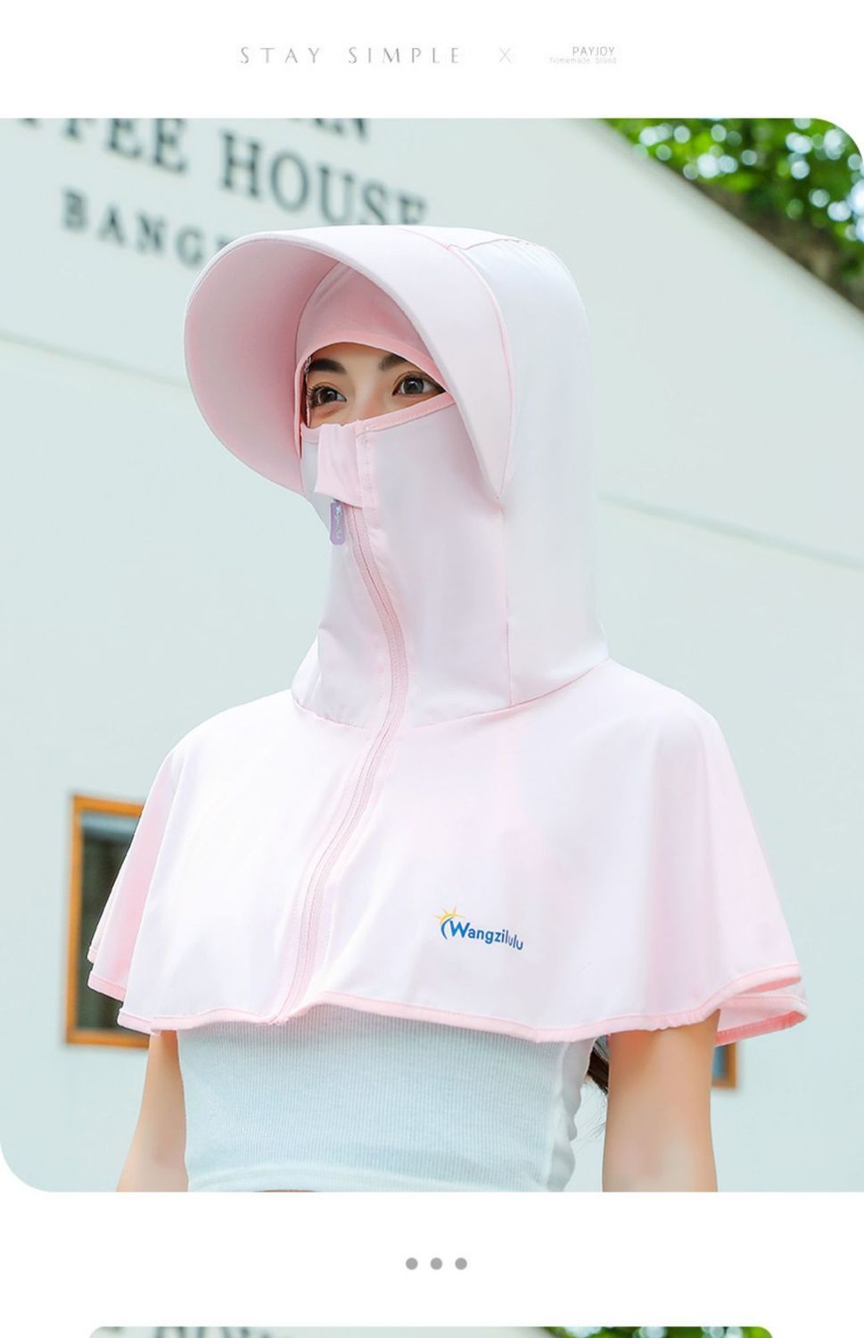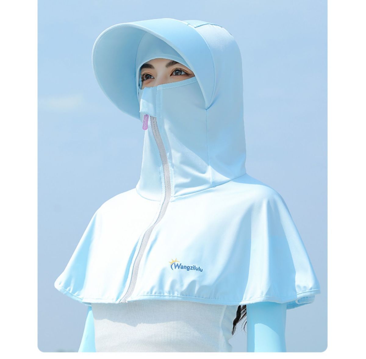 夏天女防晒衣帽披肩披风斗篷全脸面护颈开车防紫外线UPF50+