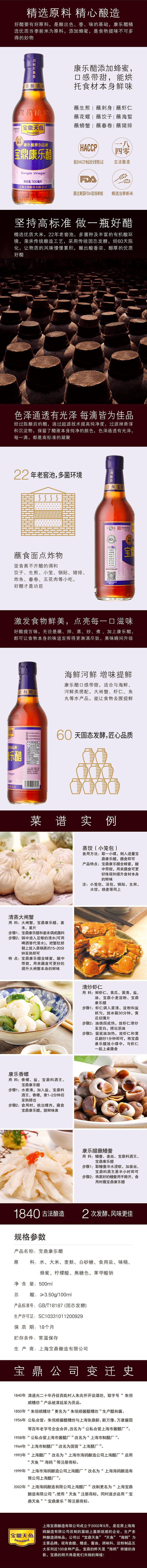 开胃蘸醋蟹醋调料500ml/瓶家用炒菜凉伴调味上海宝鼎康乐醋酸爽
