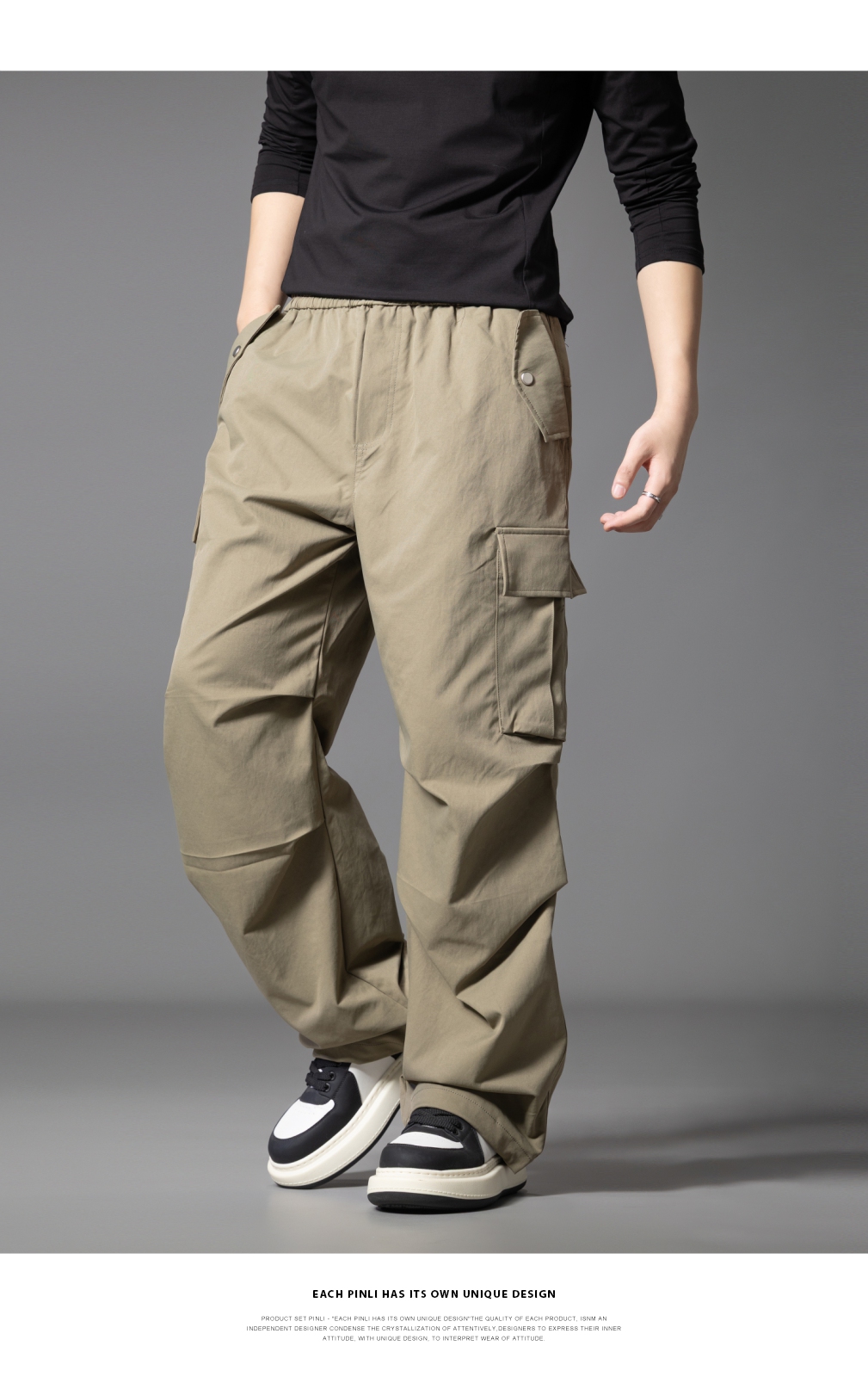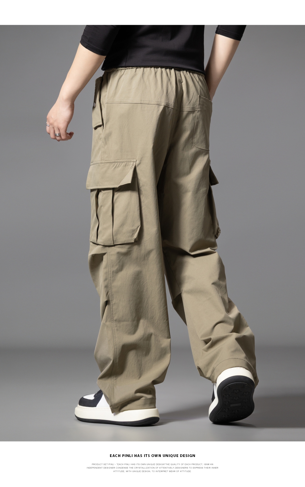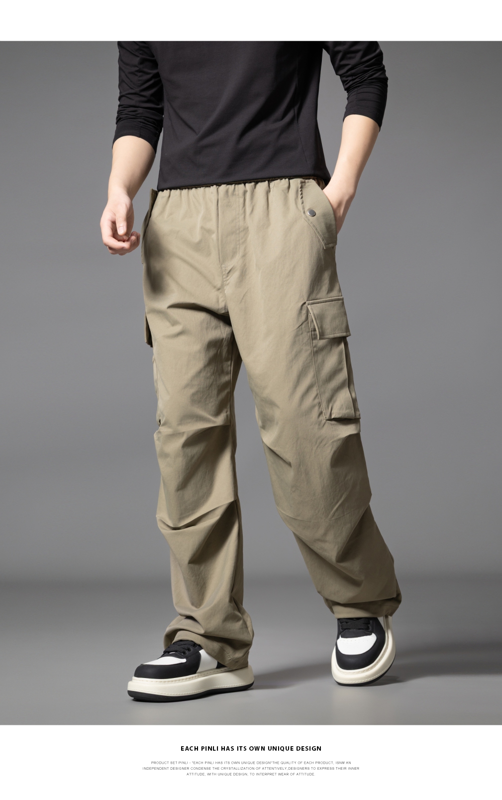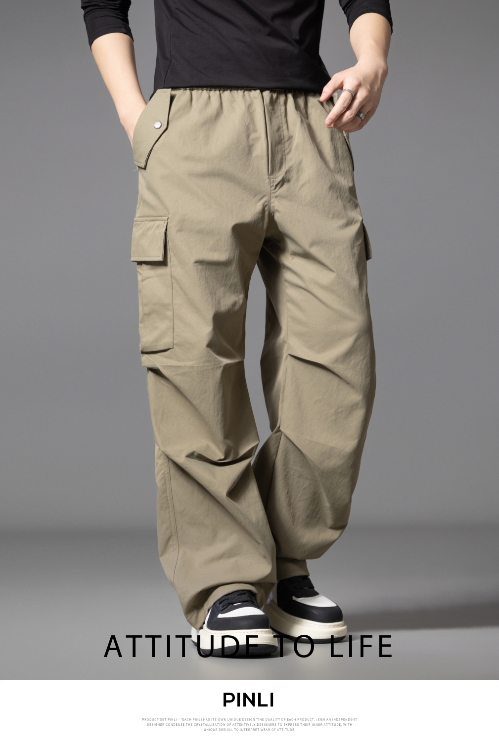 PINLI品立2025秋季新款男士户外多袋工装裤潮流百搭直筒休闲长裤GD253117020