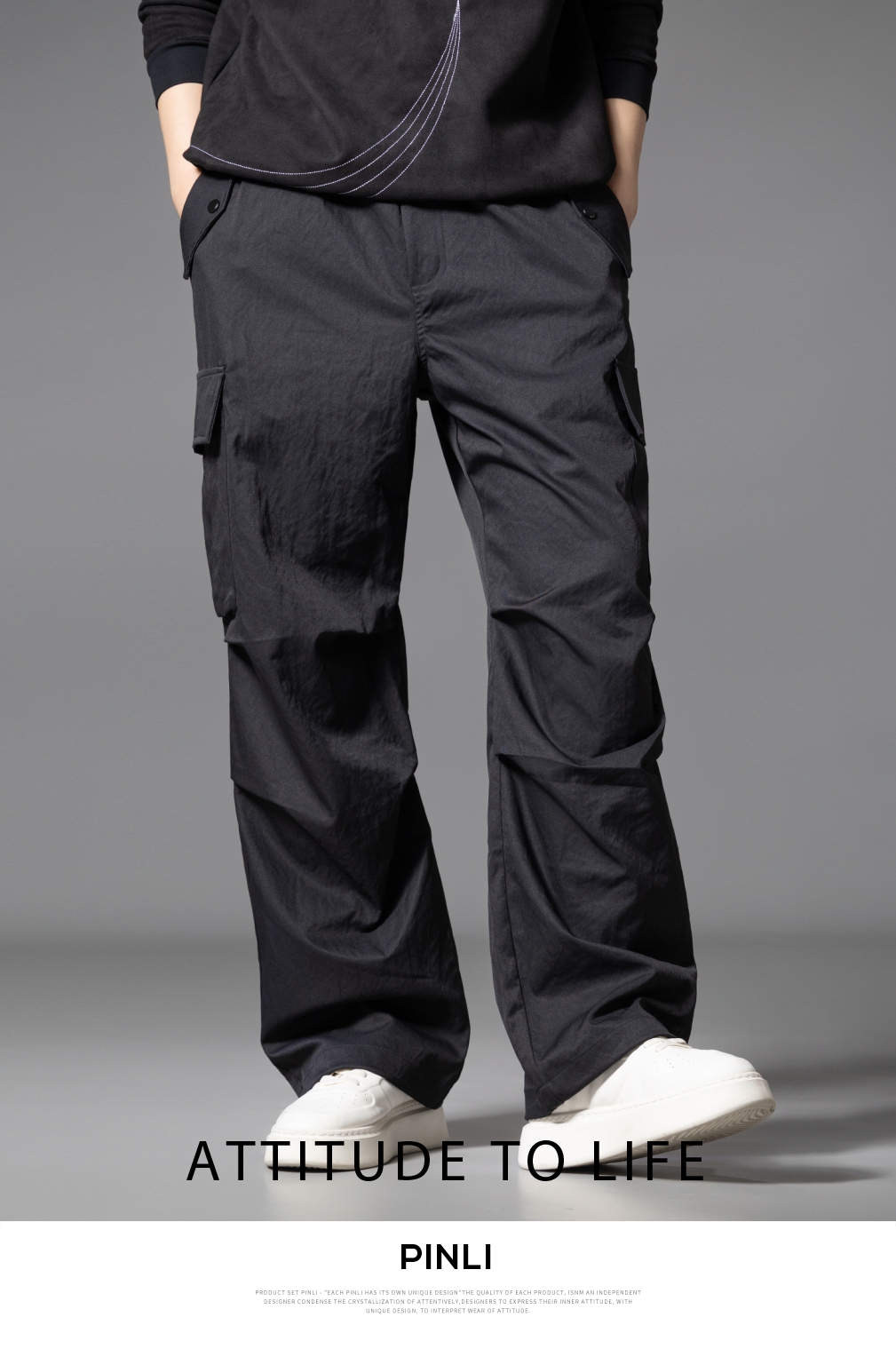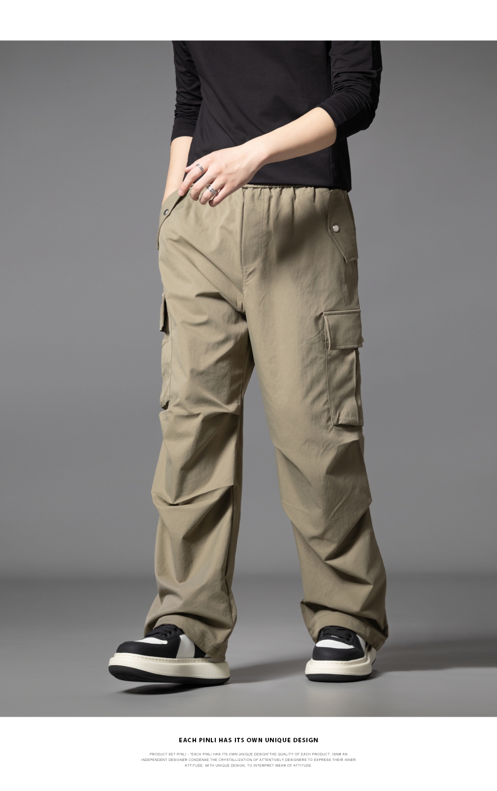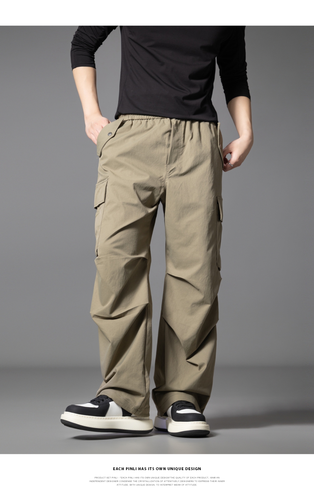 PINLI品立2025秋季新款男士户外多袋工装裤潮流百搭直筒休闲长裤GD253117020