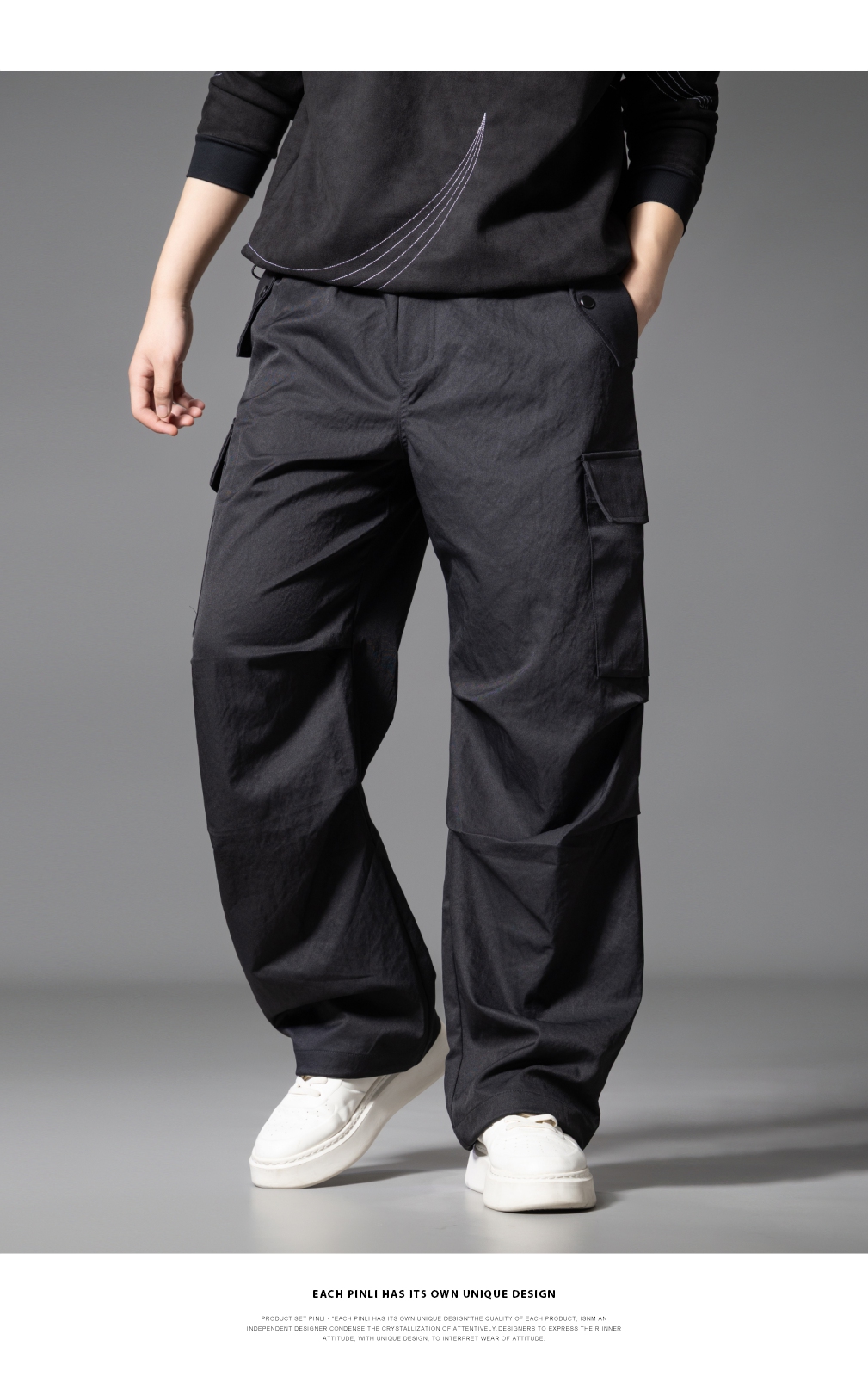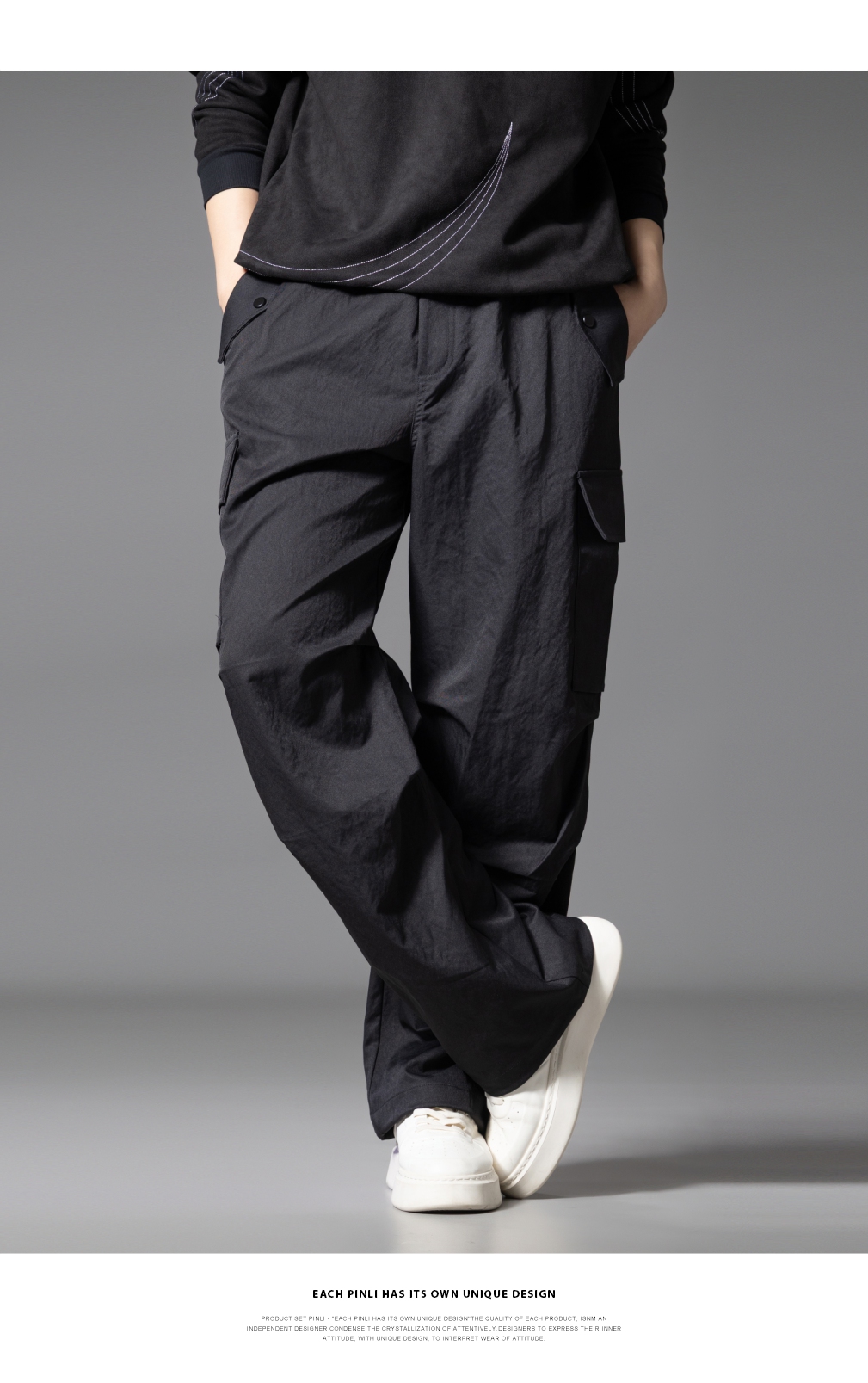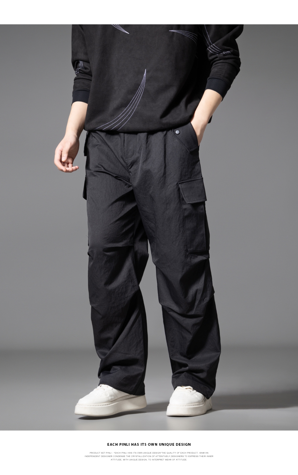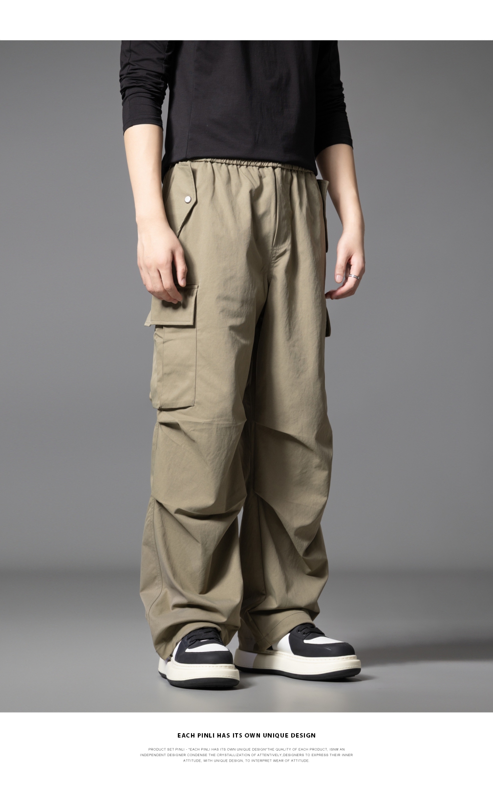 PINLI品立2025秋季新款男士户外多袋工装裤潮流百搭直筒休闲长裤GD253117020