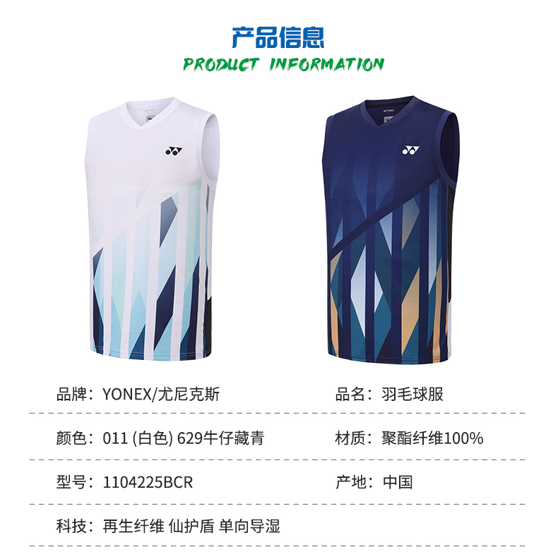 尤尼克斯新款YONEX短袖1104225BCR男款YY上衣背心速干羽毛球服