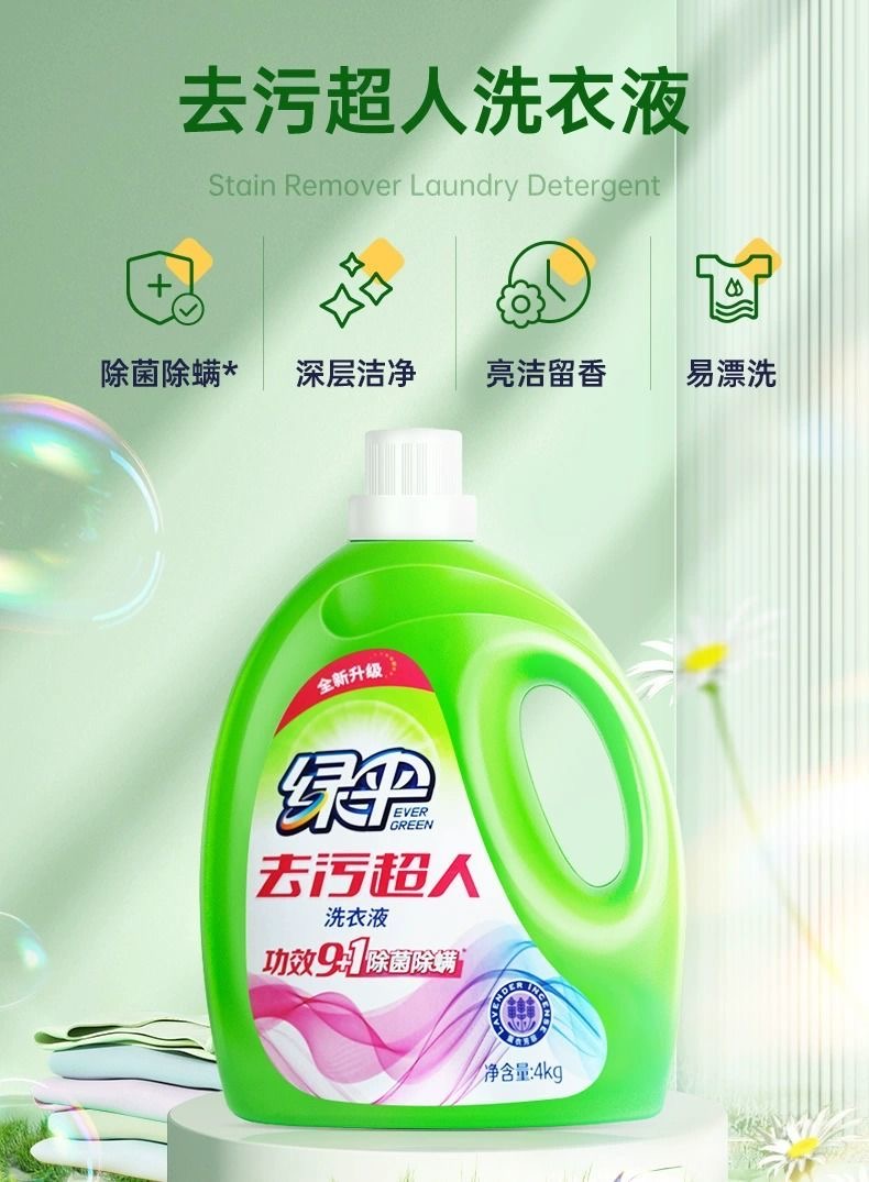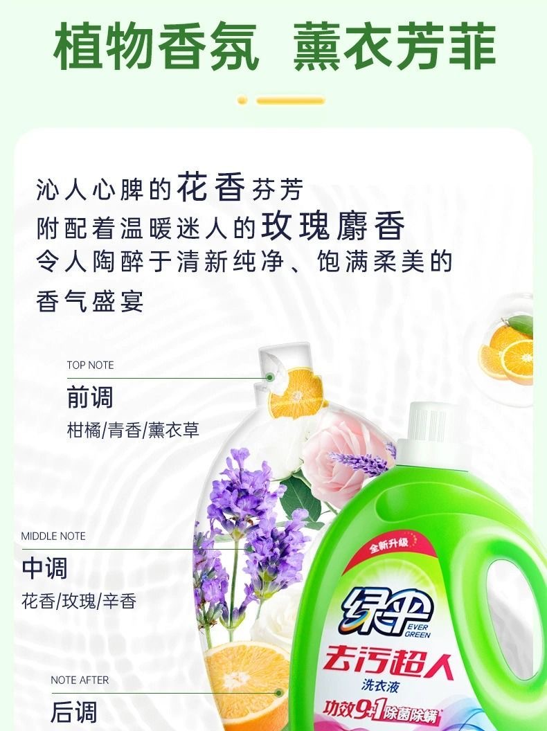 绿伞去污超人洗衣液持久花香深层洁净家庭宿舍母婴装去污留香