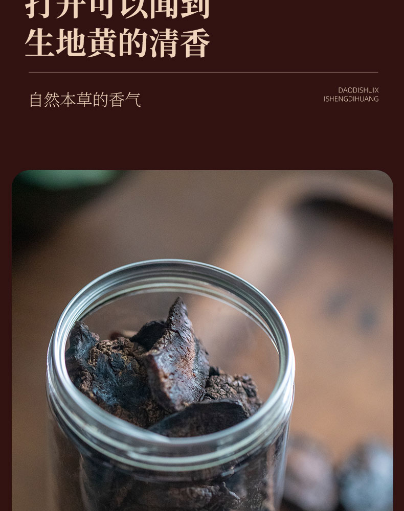 地黄生切片泡茶茶饮250g#熬夜来一杯#罐装密封。茶办公室随心搭档。低温慢烘非晾晒干净切片泡茶饮用。生地黄黑豆饮