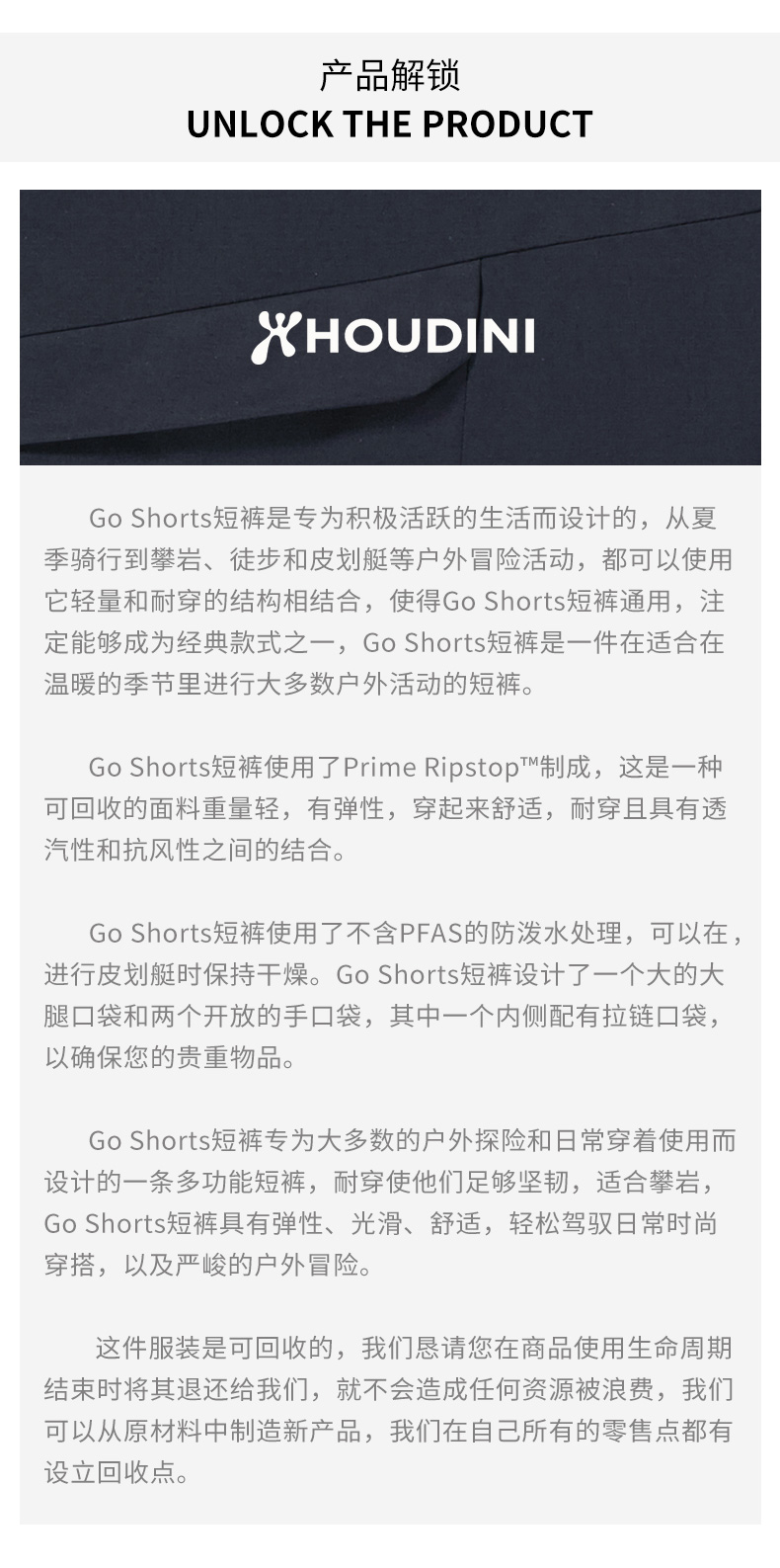 HOUDINI胡丁尼 Go Shorts 走起 女户外防泼水抗撕裂休闲徒步短裤 860027