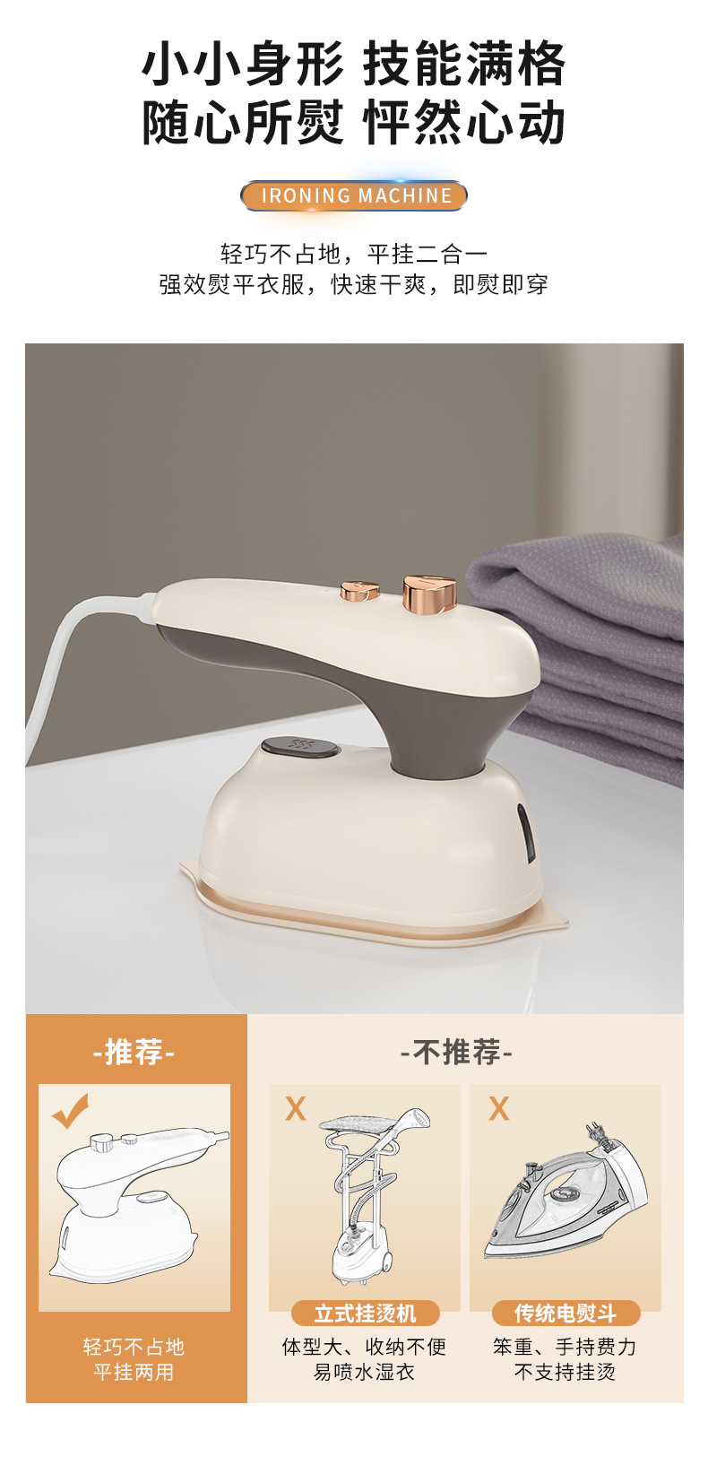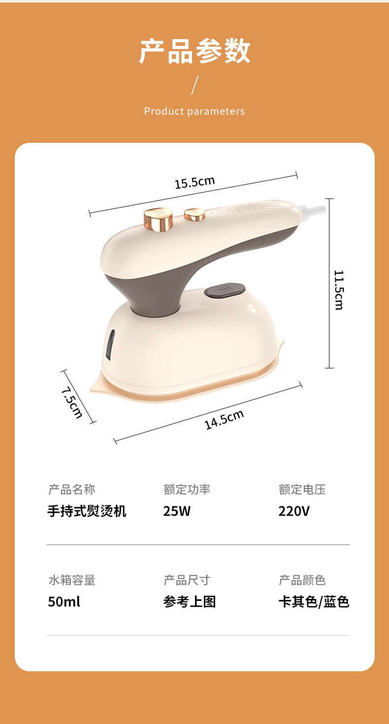 【品名】花姿彤 迷你熨斗挂烫机 轻巧便携 快速除皱 平烫挂烫两用 【规格】卡其色 【产地】国内 【发货包装】独立包装 【发货地】广东 【发货快递】圆通、中通随机发 【不发货区域】新疆、西藏、港澳台 【发货时效】48-72小时,周末节假日顺延 |