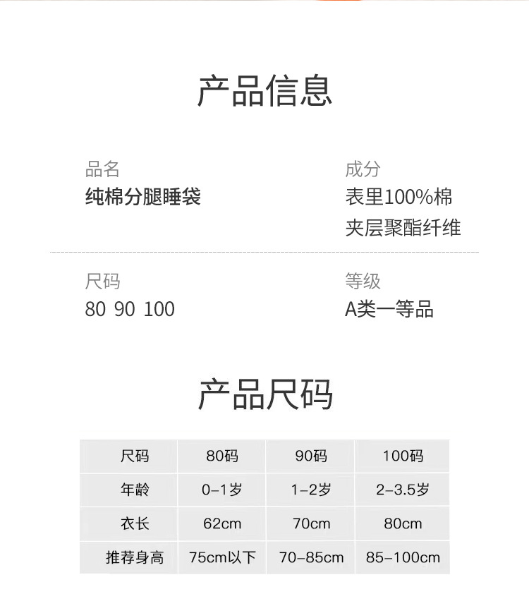 【婴幼儿加厚夹棉分腿睡袋】秋冬宝宝长袖睡衣新生宝宝拉链保暖防踢被