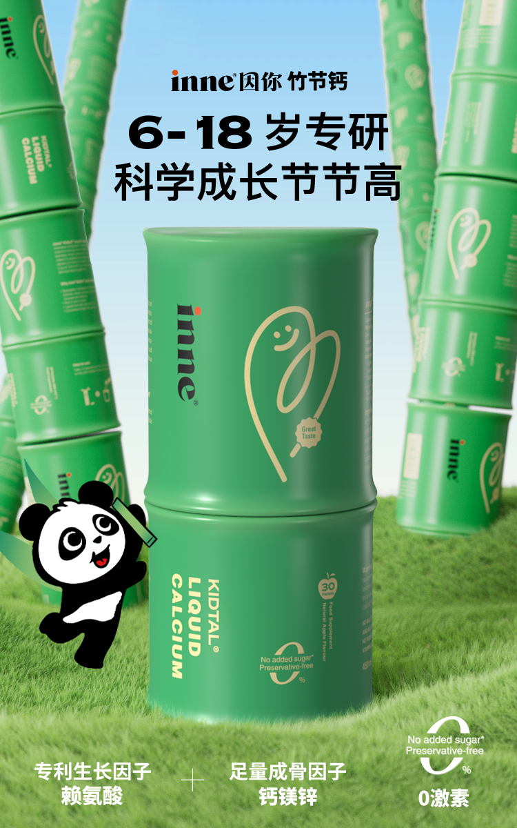 【🎁实付759送VC】inne竹节钙苹果味青少年钙儿童生长钙镁锌补钙赖氨酸钙
