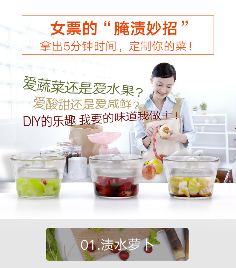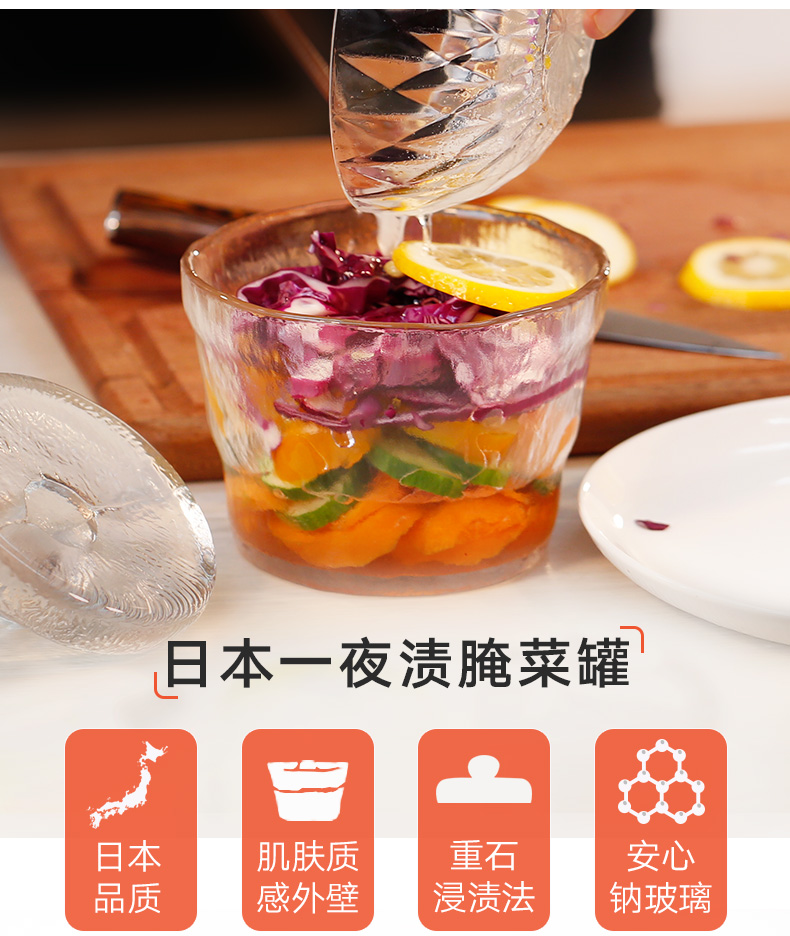日本进口泡菜坛一夜渍腌菜罐日式家用网红透明加厚玻璃储物罐