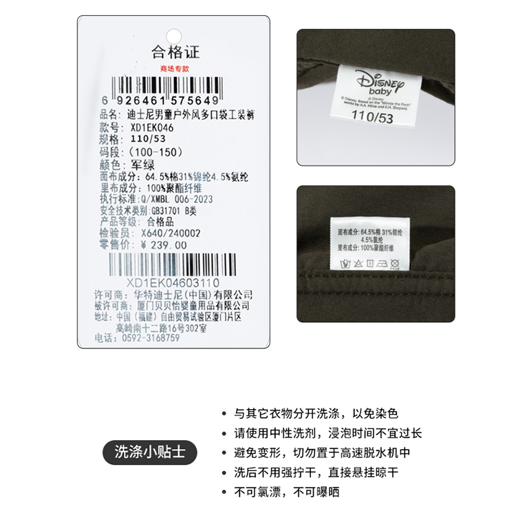 迪士尼春季新款男童工装裤XD1EK046