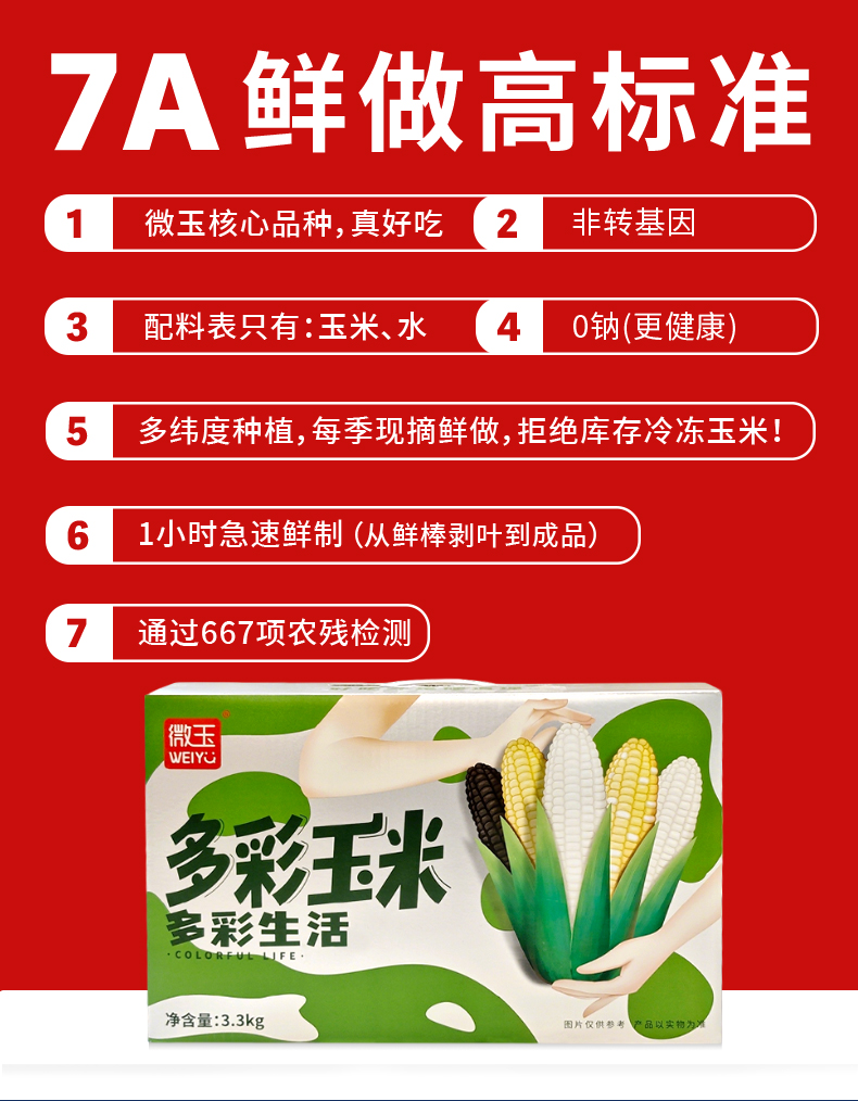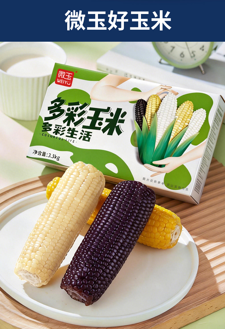 微玉 多彩玉米礼盒装 白甜+白糯+黑糯+黄糯+小花糯非转基因 3.3kg