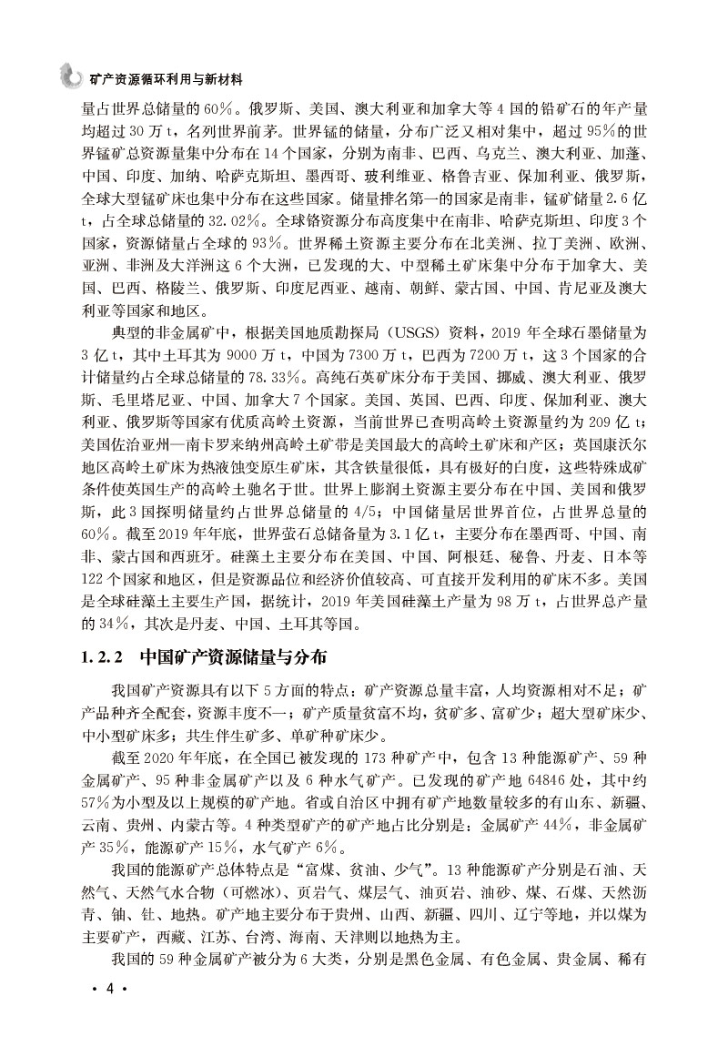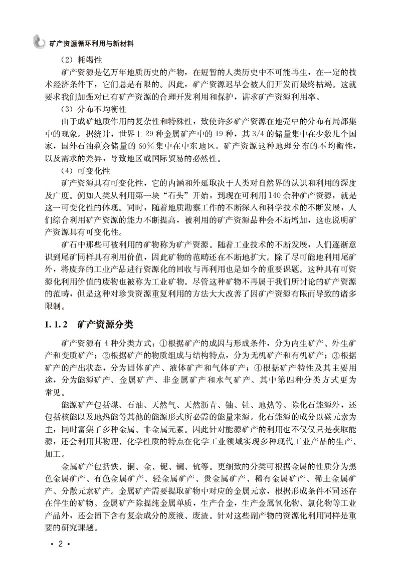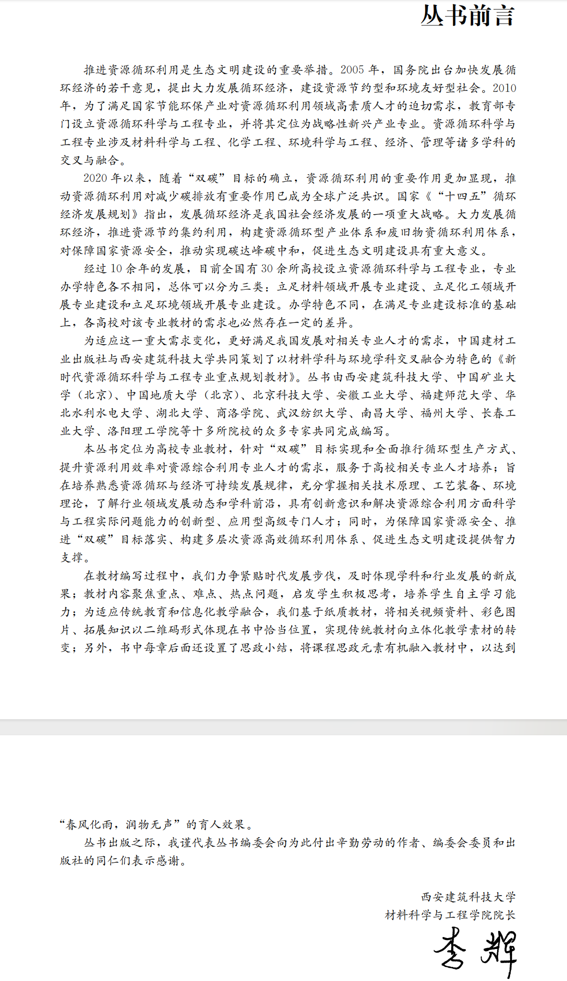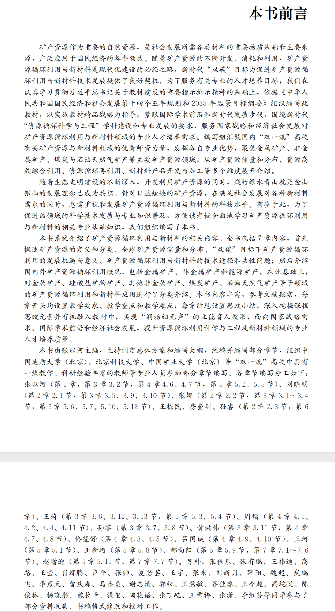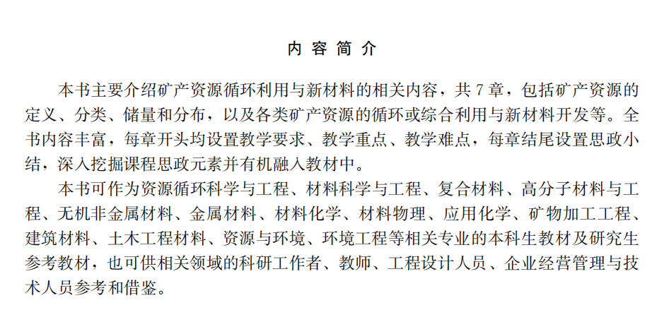 矿产资源循环利用与新材料 新时代资源循环科学与工程专业重点规划教材