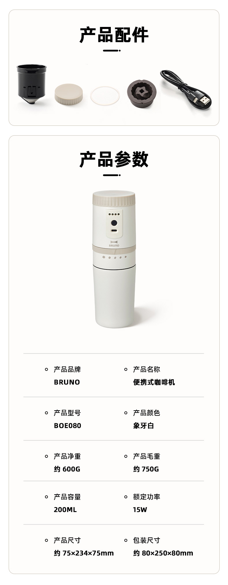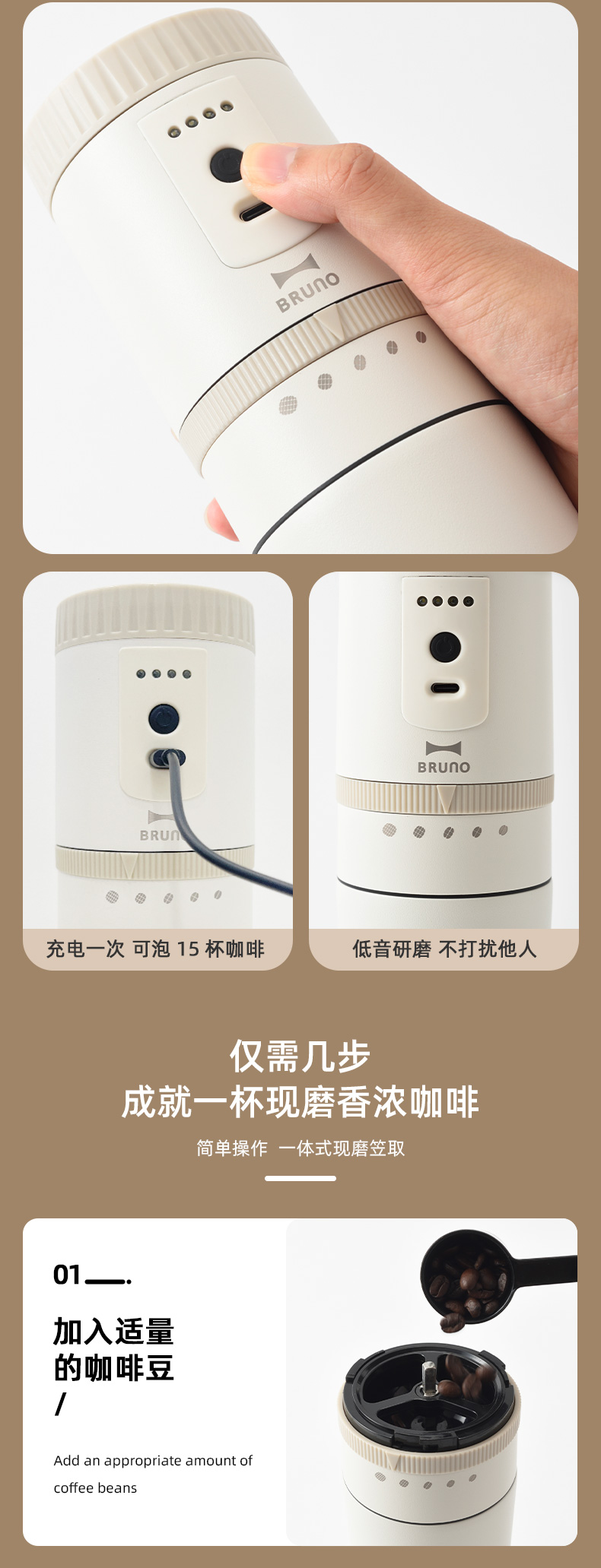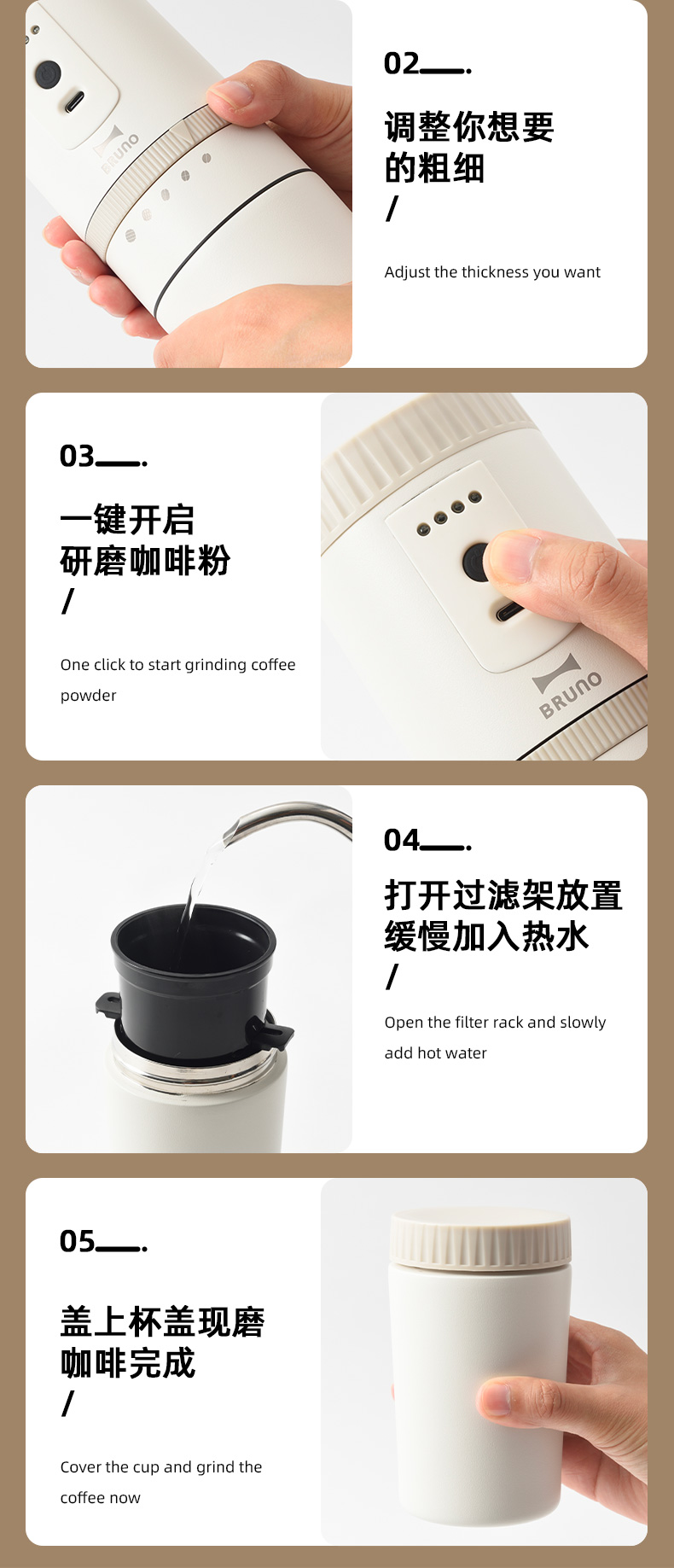 [屁侠推荐.pippa]口袋咖啡机 BRUNO便携式咖啡机BOE080 小型自动研磨一体咖啡机 一键操作 5档调节 办公室户外旅行咖啡机