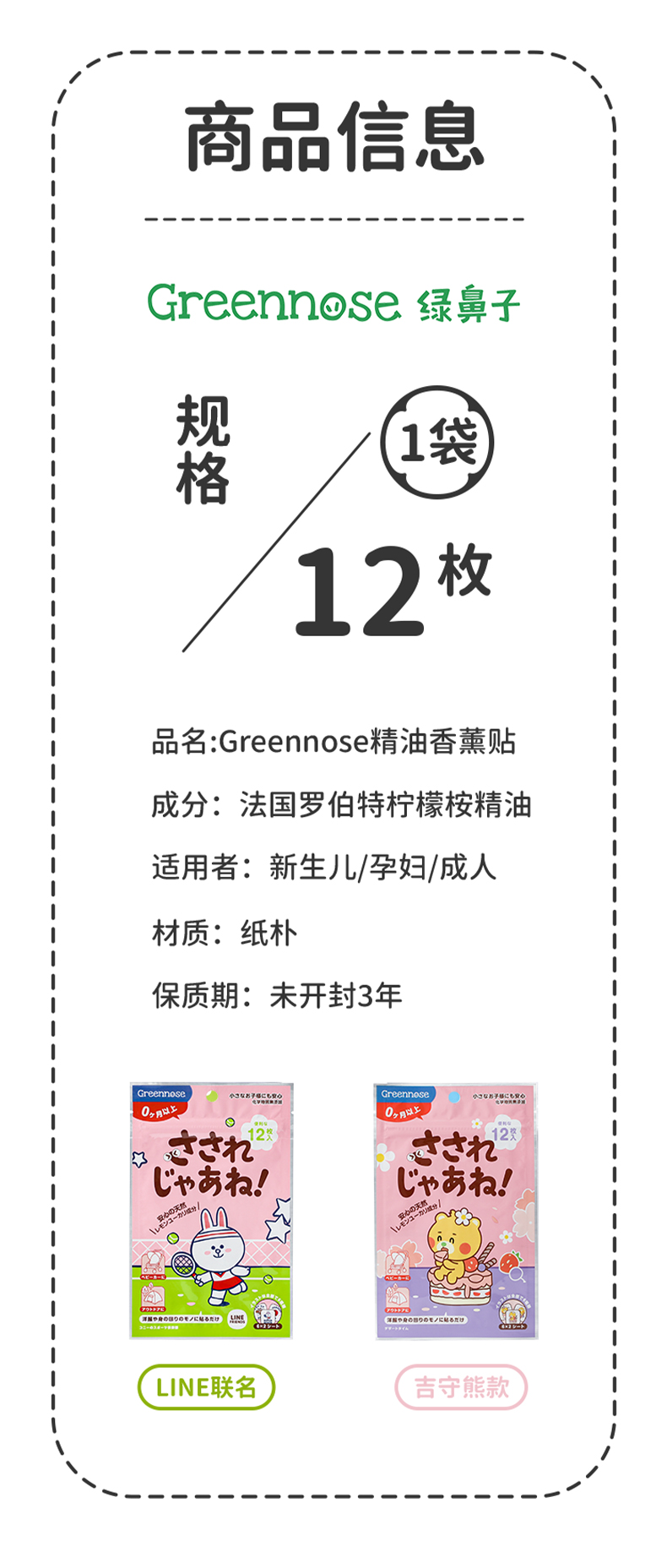 绿鼻子运动的布朗熊驱蚊贴婴幼儿童宝宝精油防蚊贴1个