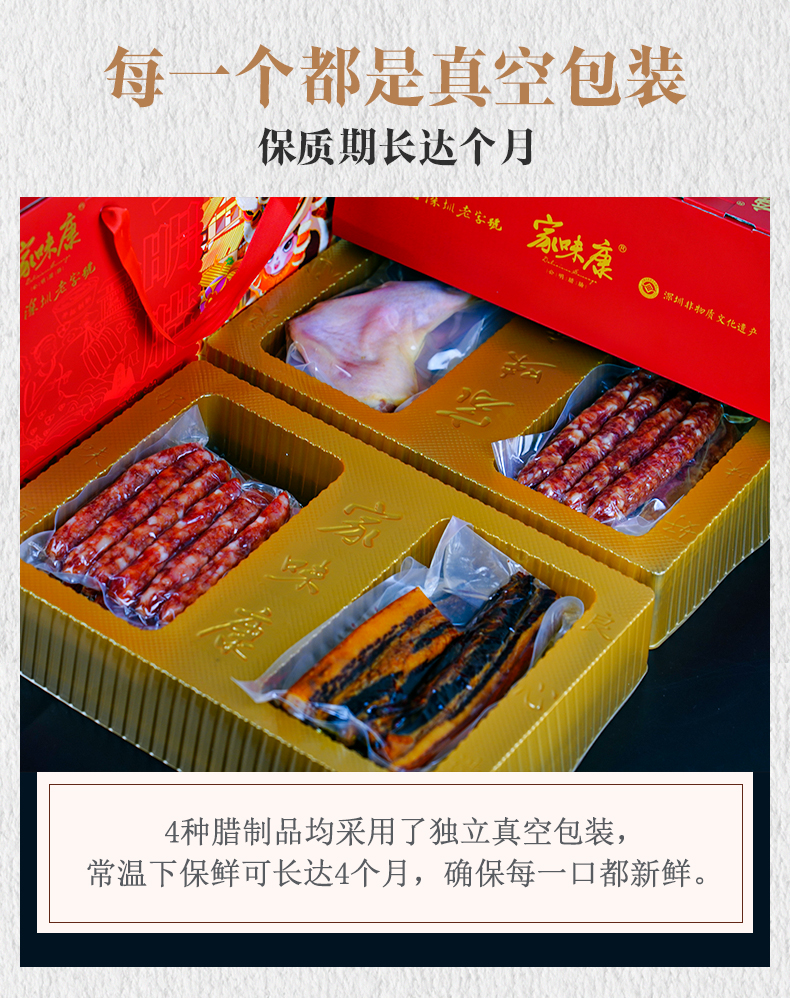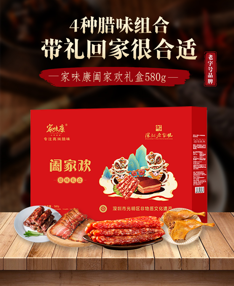 阖家欢腊味礼盒580g(珍味腊肠200g*1,陈皮腊肠100g*1,公明腊肉100g*1,腊鸭腿180*1)