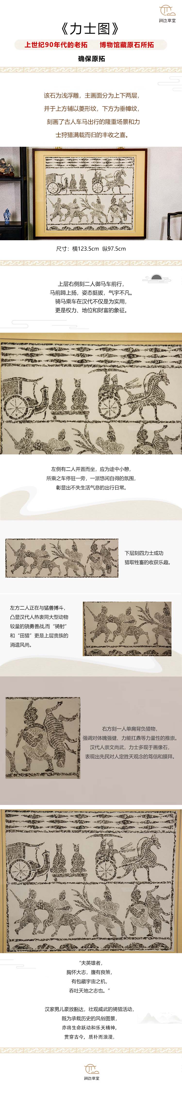 《力士图》汉代画像石拓片已裱框