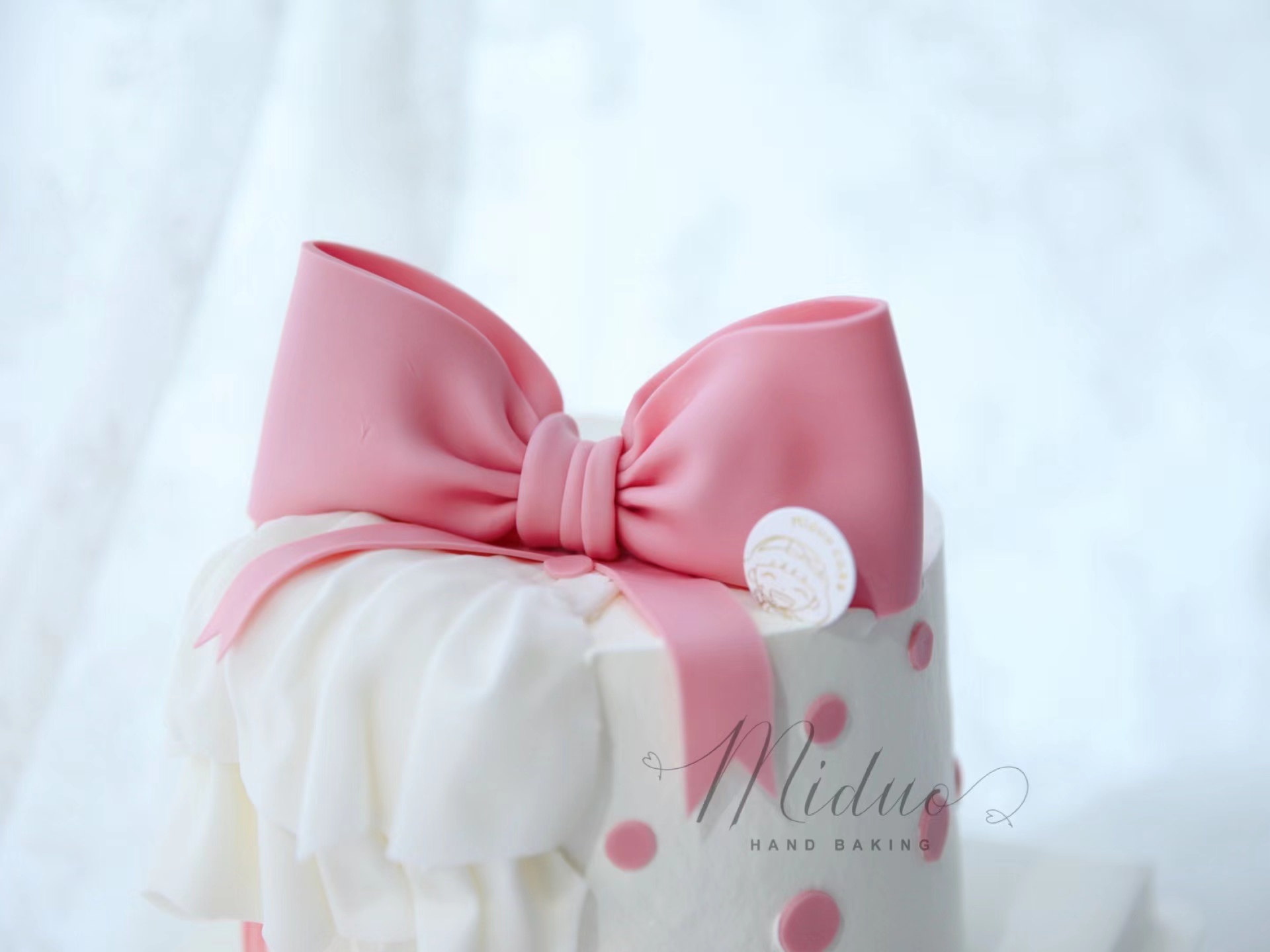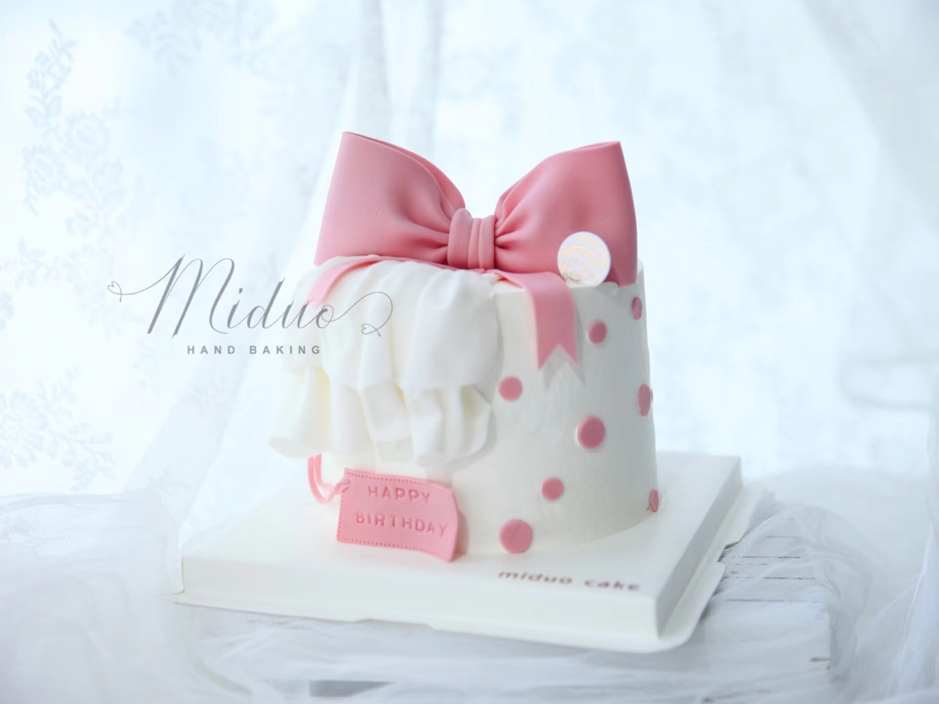 女生蛋糕 翻糖蝴蝶结 粉红色 甜美裙边 小红书网红款