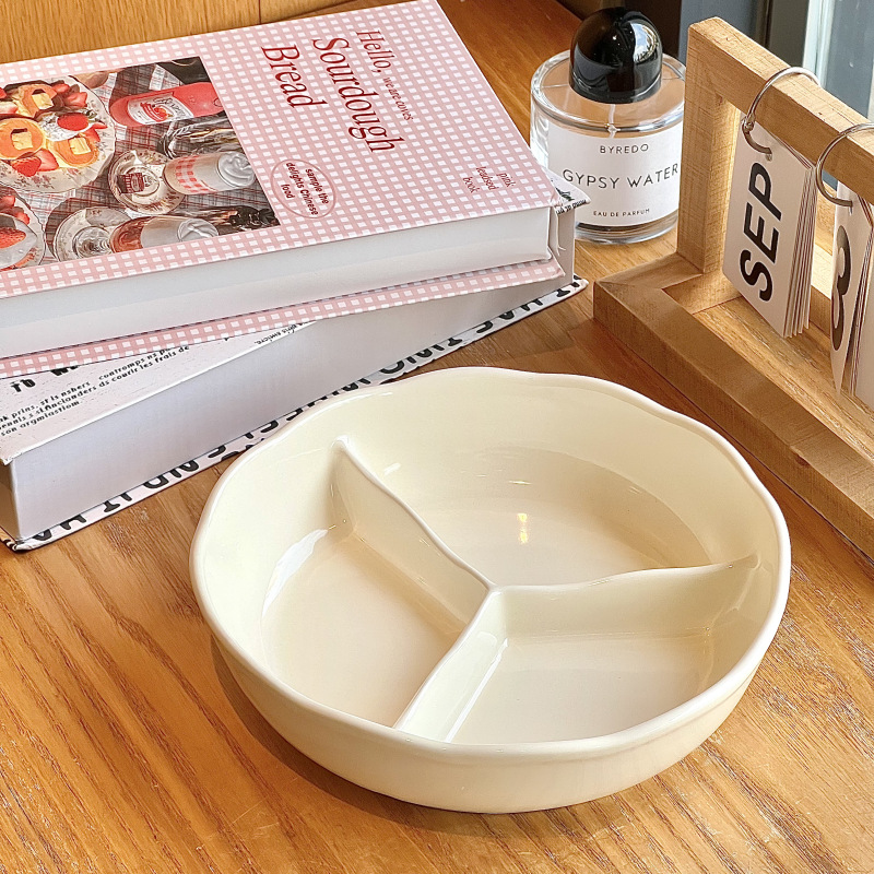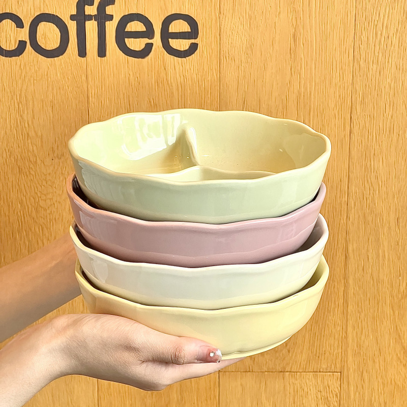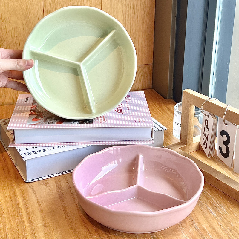 【花型三格深盘】陶瓷色釉家用加深分格餐盘早餐减脂分菜盘一人食餐具