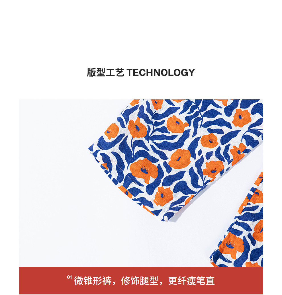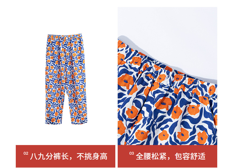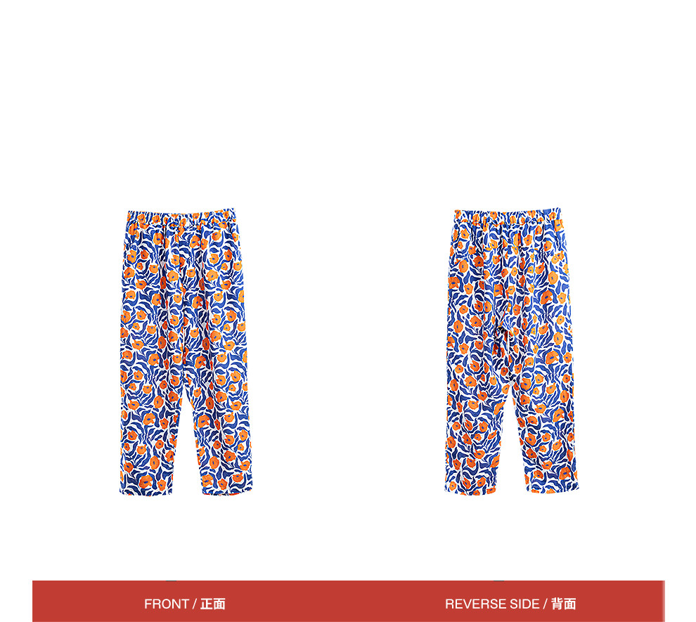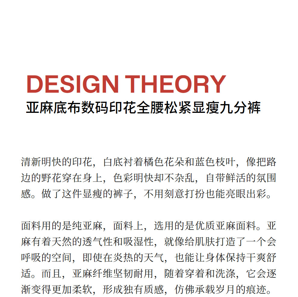 绽放103朵/亚麻底布数码印花全腰松紧显瘦九分裤设计感休闲裤女