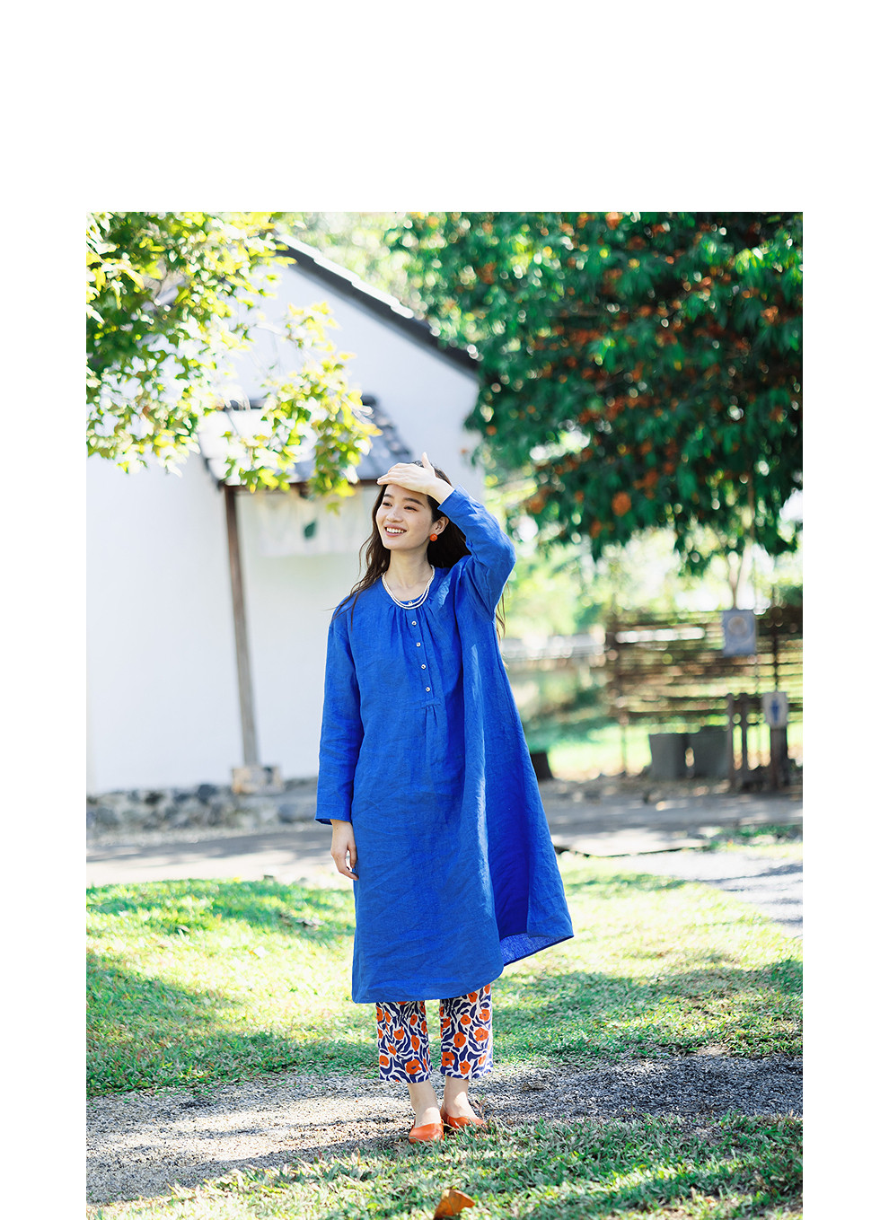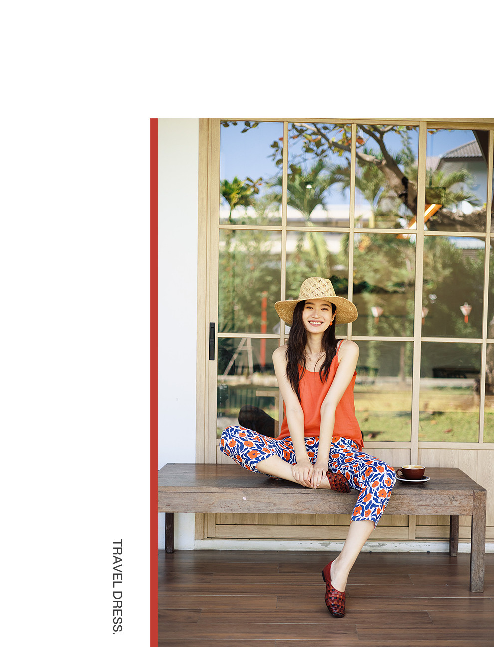 以天然亚麻为载体,融合热烈色彩与自在剪裁为身在城市、心怀远方的女性提供兼具美学与舒适的旅行着装