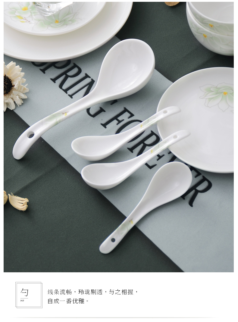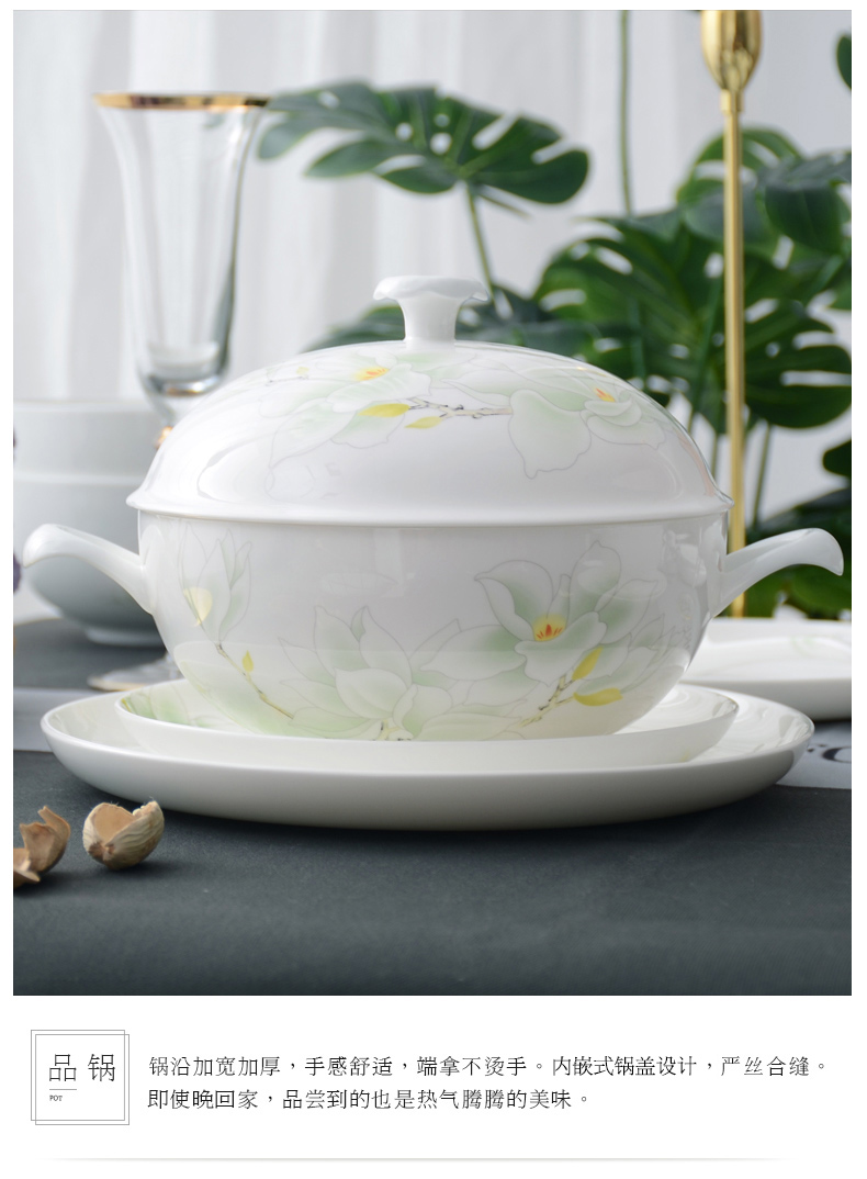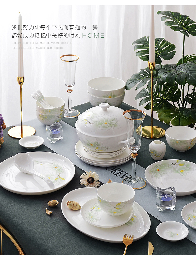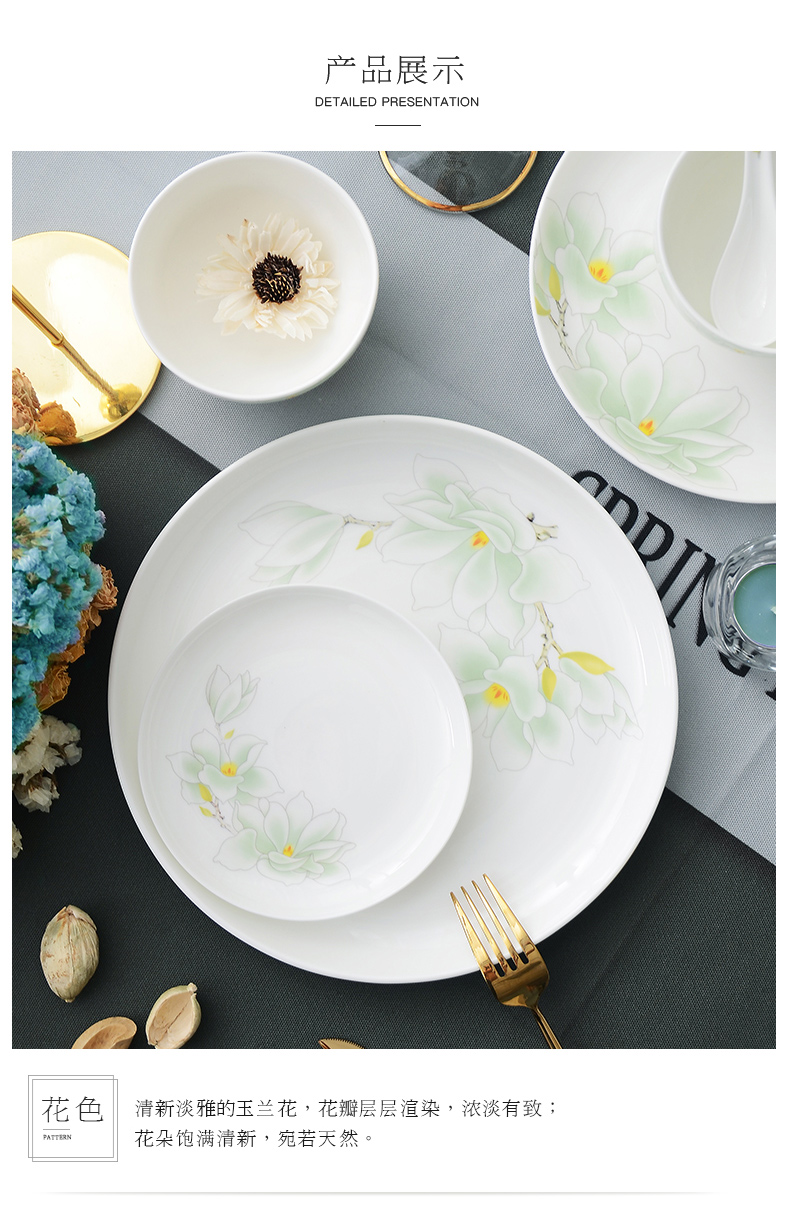 华光陶瓷 骨瓷餐具套装 碗碟套装 家用 中式釉中彩 白玉兰