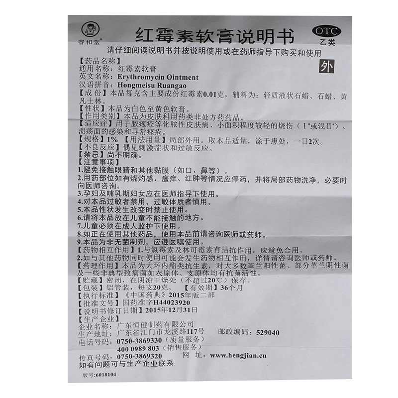 恒健 睿和堂 *软膏 20克脓疱疮化脓性皮肤病烧伤溃疡面感染