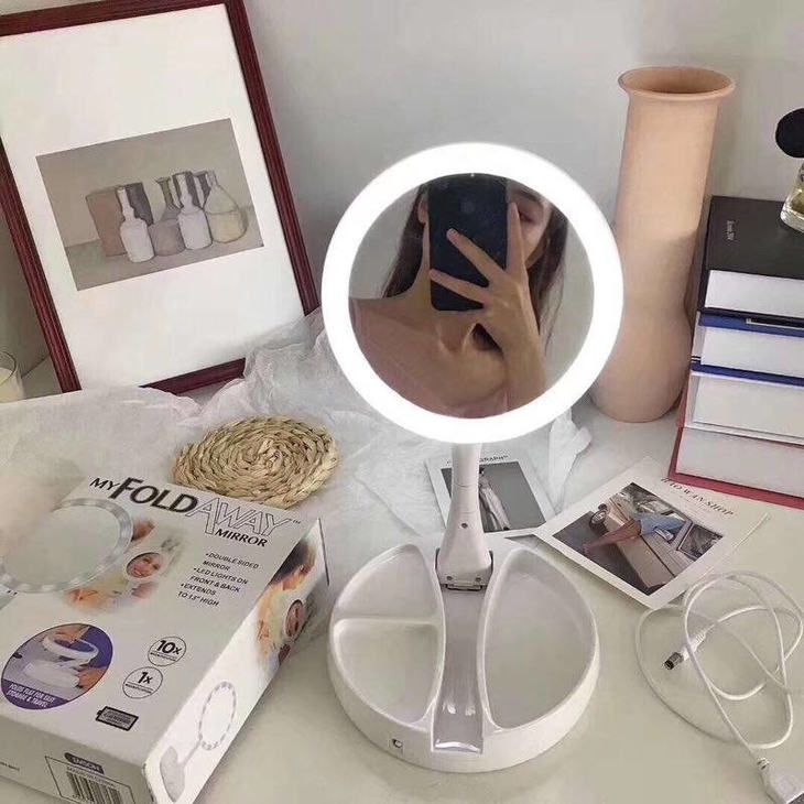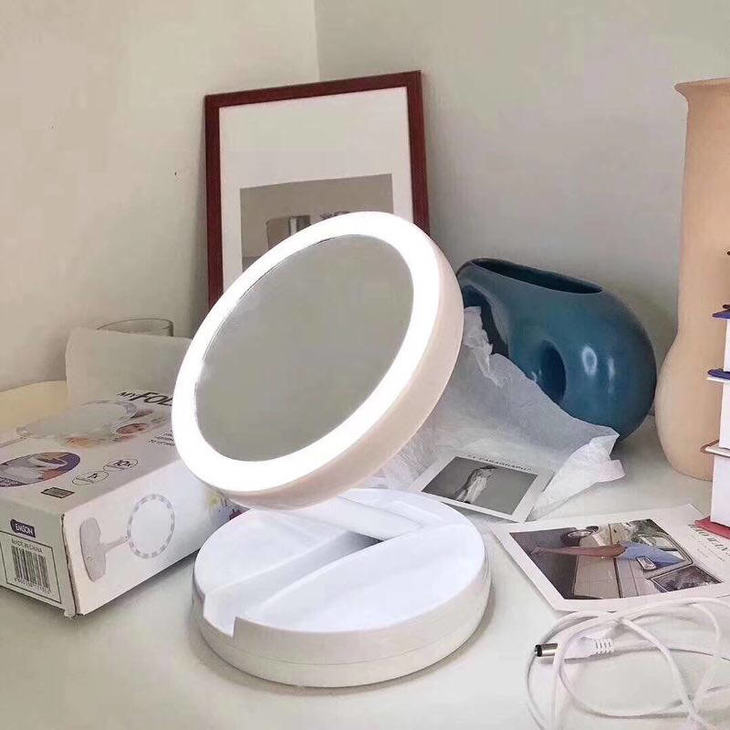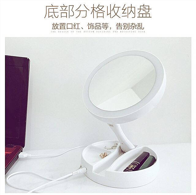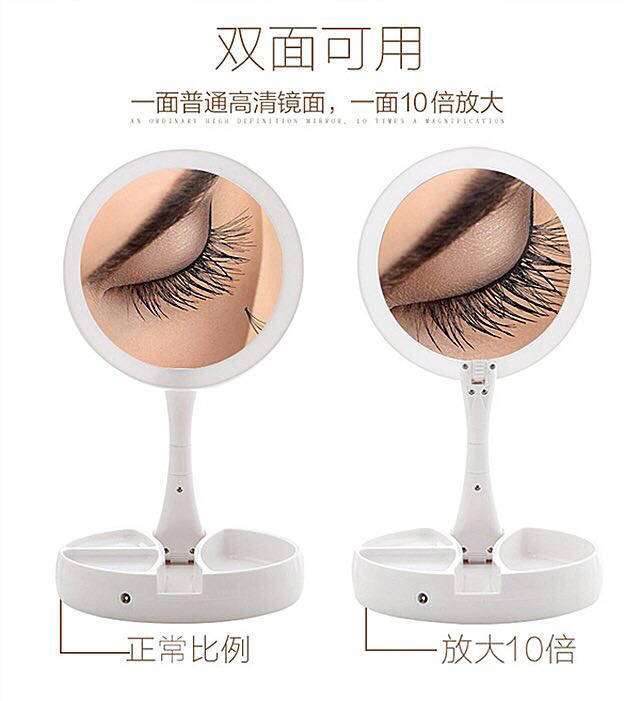 【抖音网红同款LED补光化妆镜】 双面两用10倍放大收纳折叠化妆镜 节日礼物