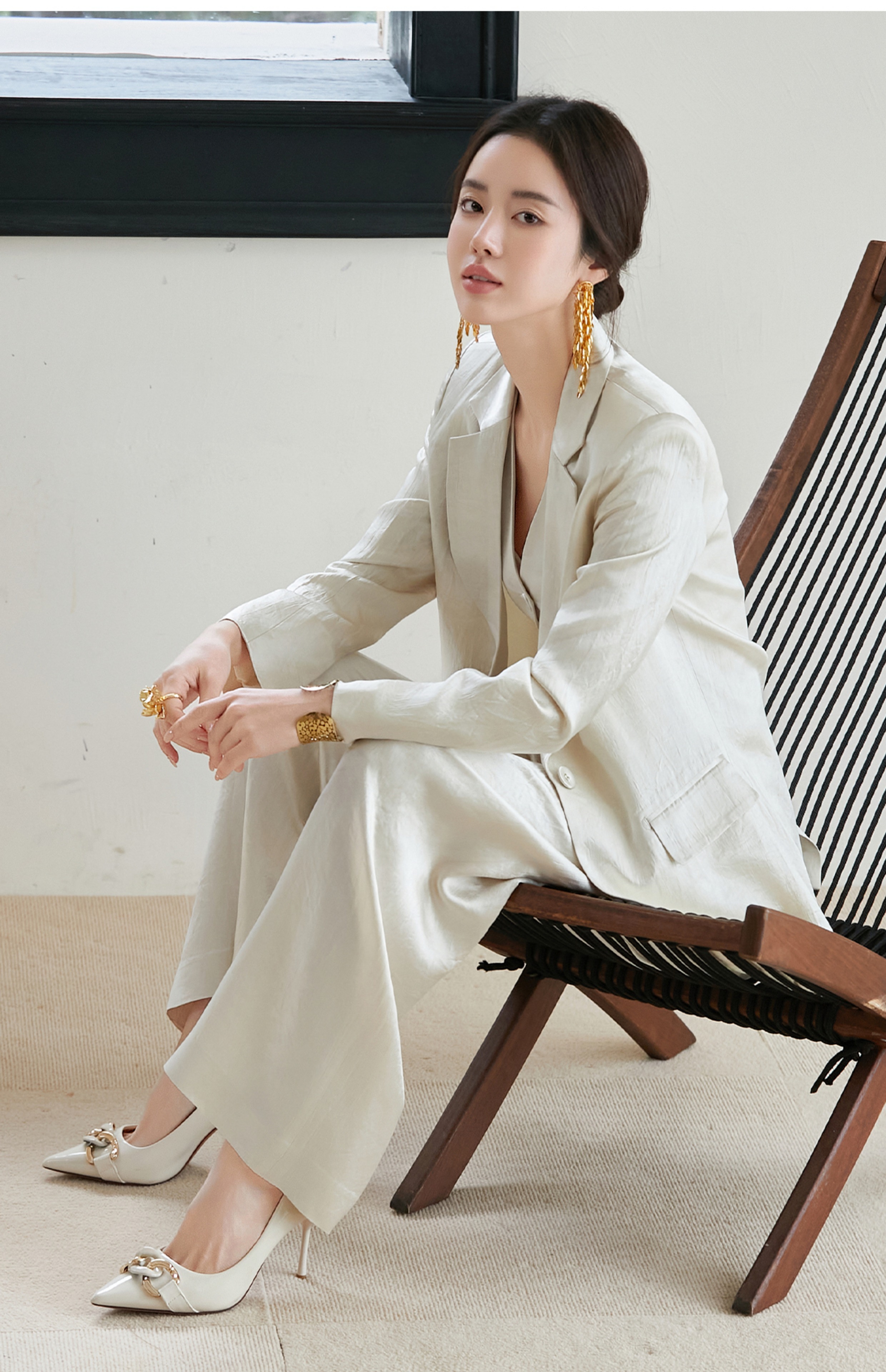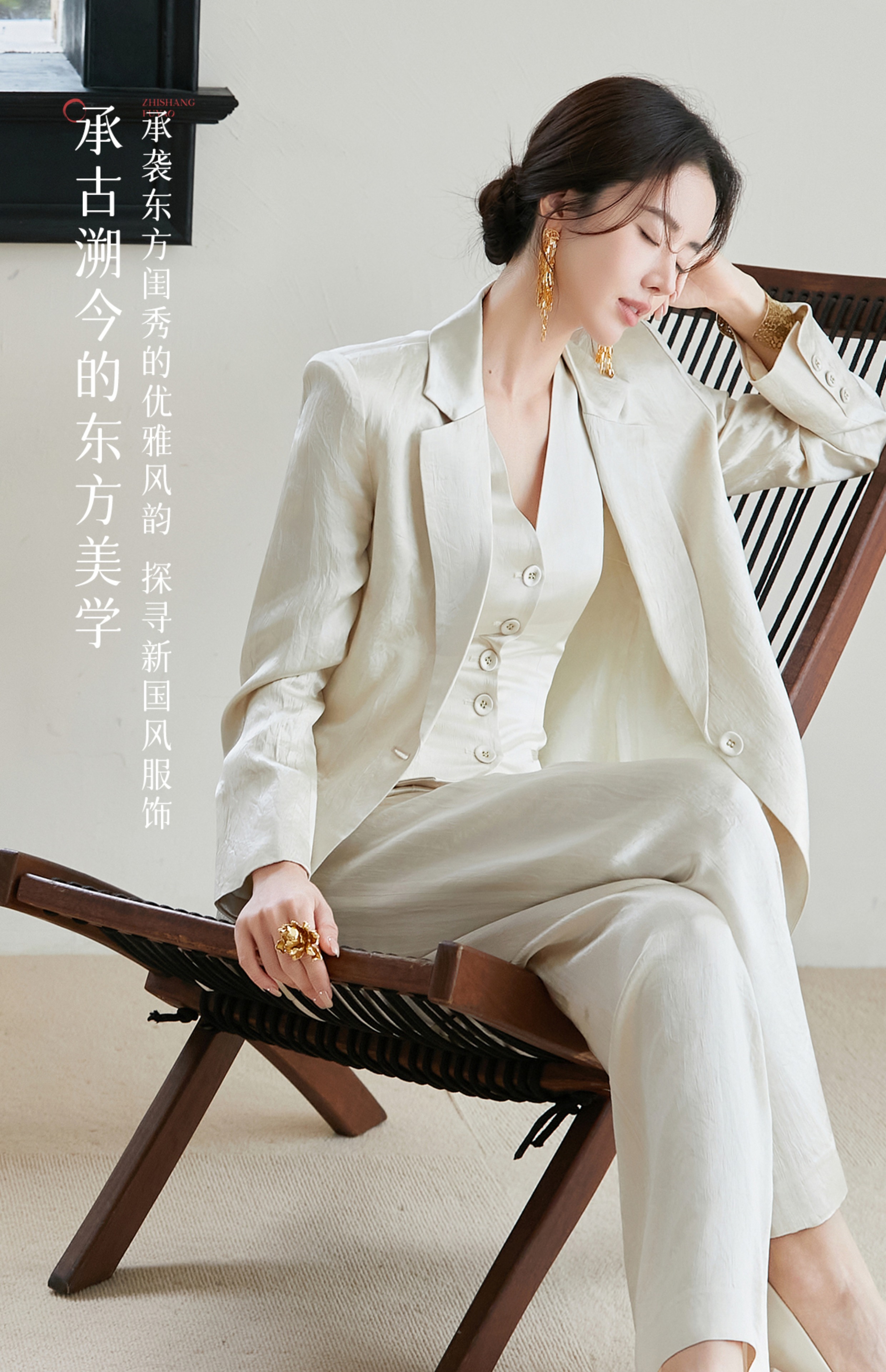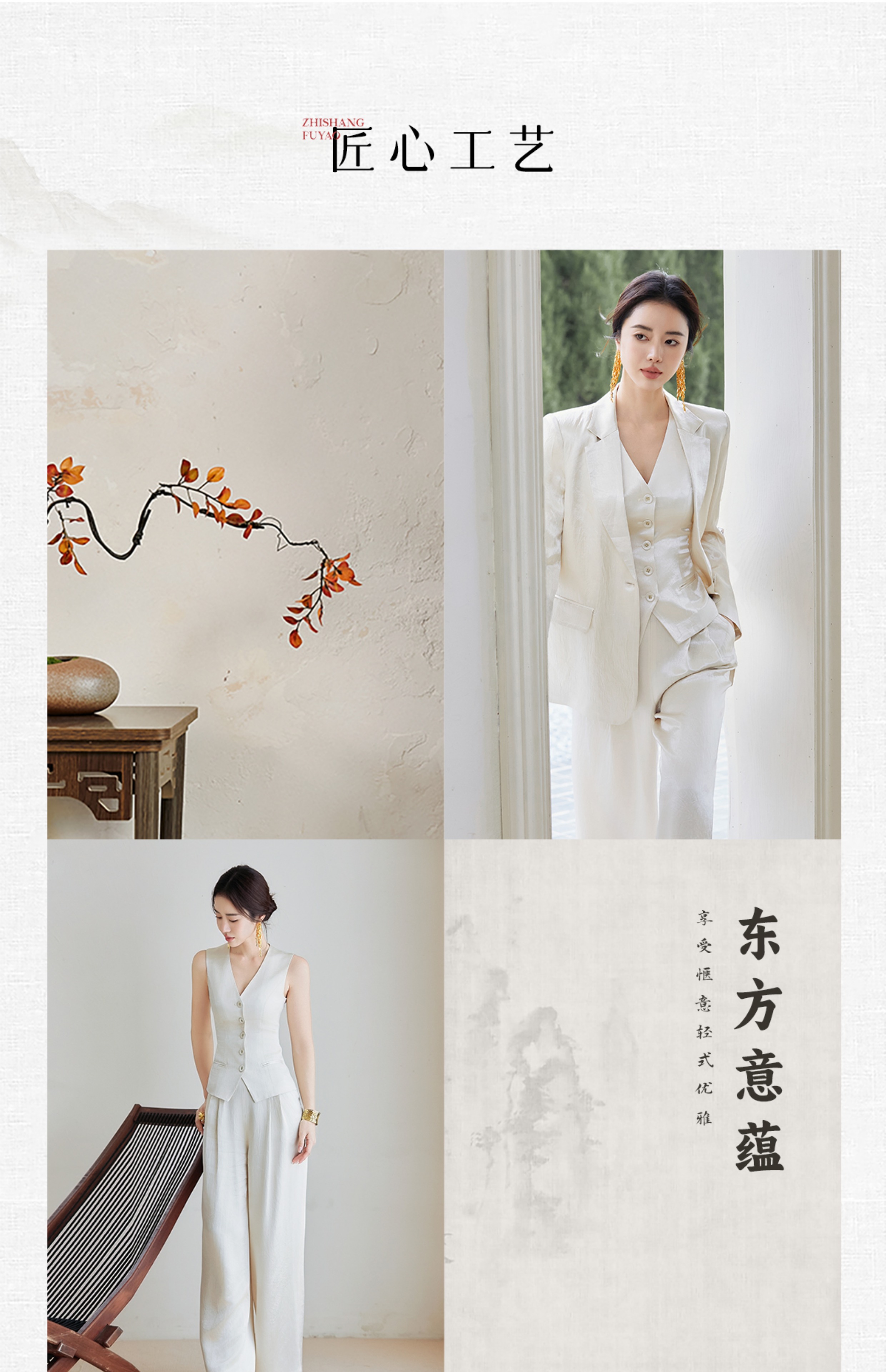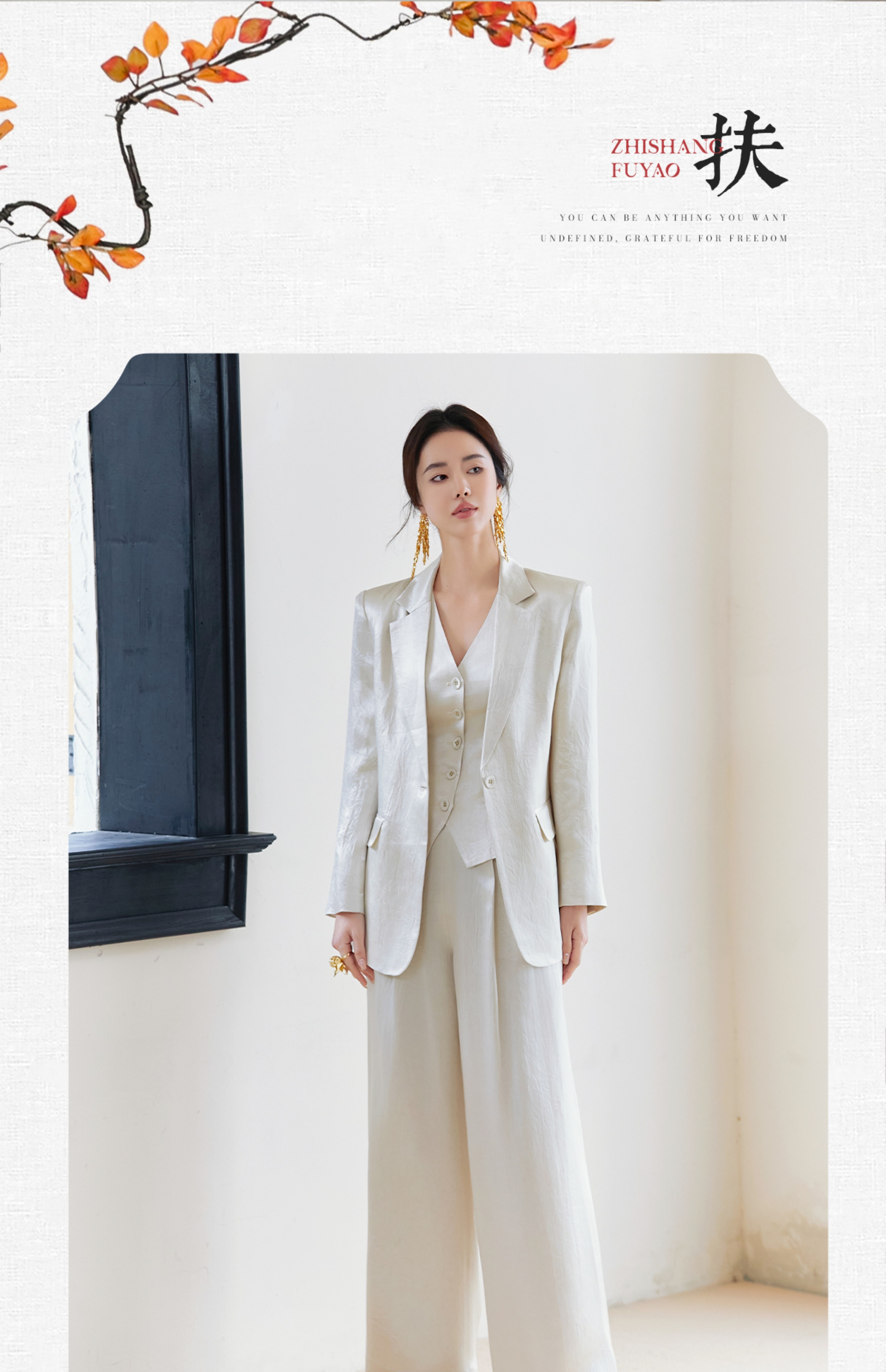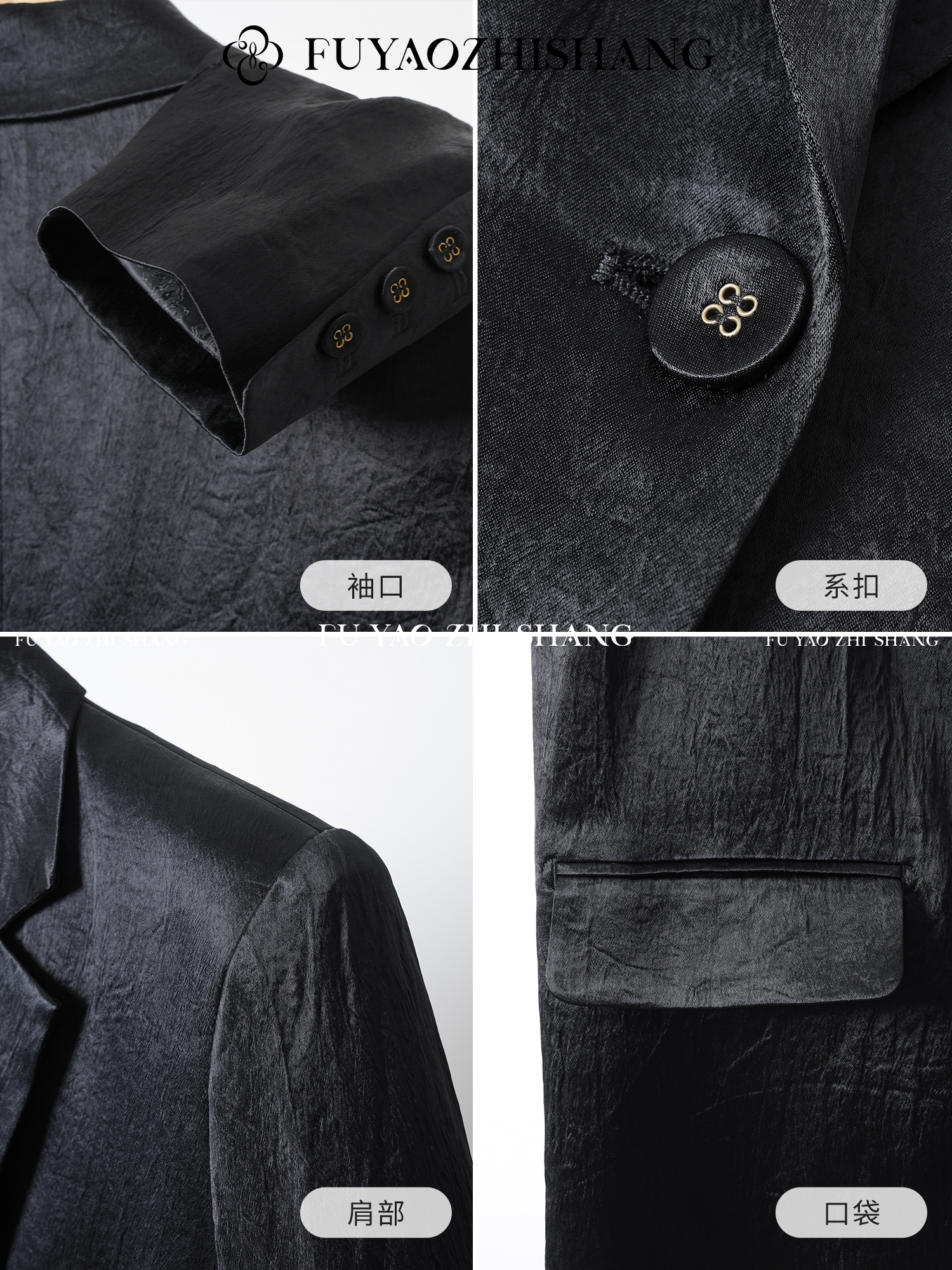 FUYAO扶摇 醋酸缎面西装外套女2025新款廓形显瘦西服老钱风套装