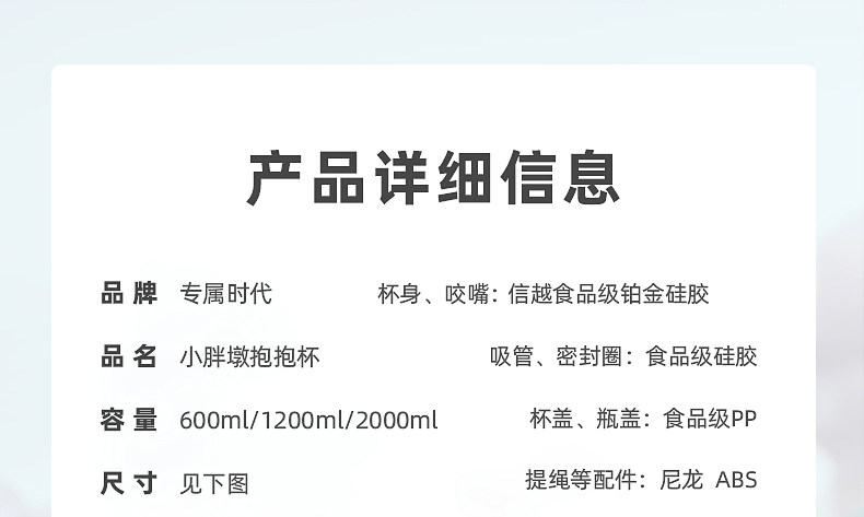 奶嘴硅胶 折叠大肚水杯【600ml赠肩带绳,1.2L和2L赠手提绳】