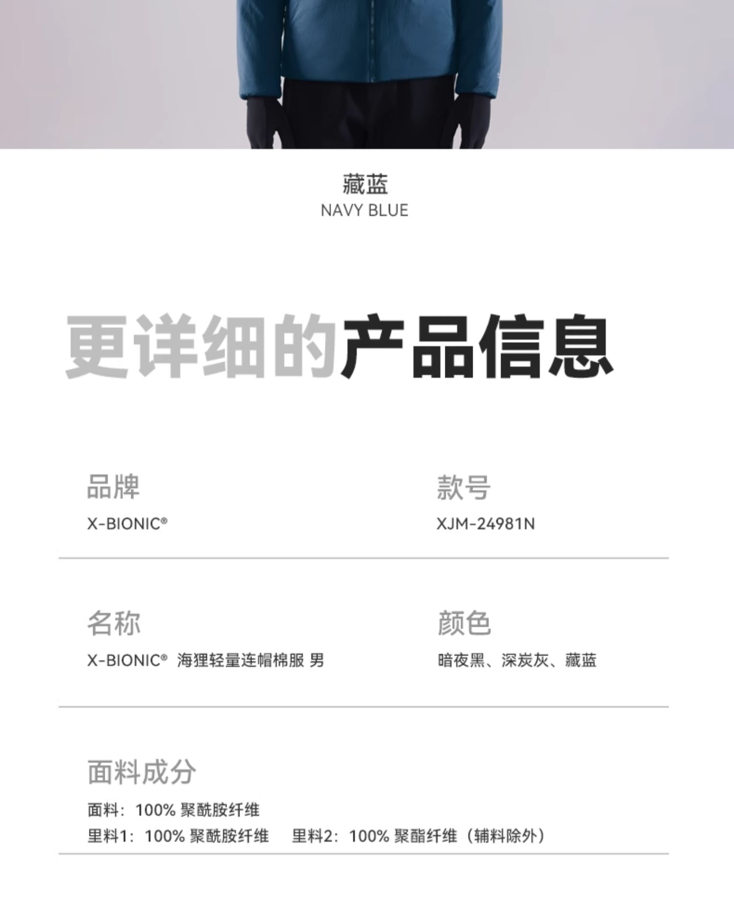 X-BIONIC 海狸轻量连帽棉服 男子运动户外保暖金标P棉 XJM-24981N
