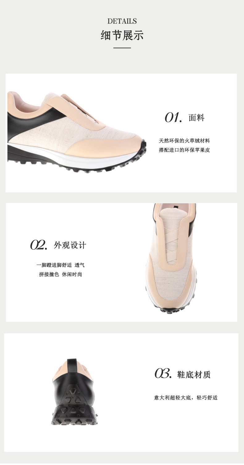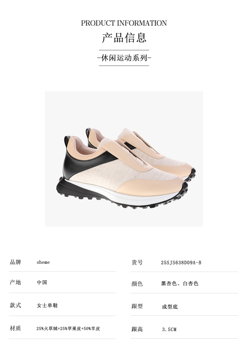 sheme天然火草绒环保苹果皮一脚蹬拼接撞色女士运动鞋可定制