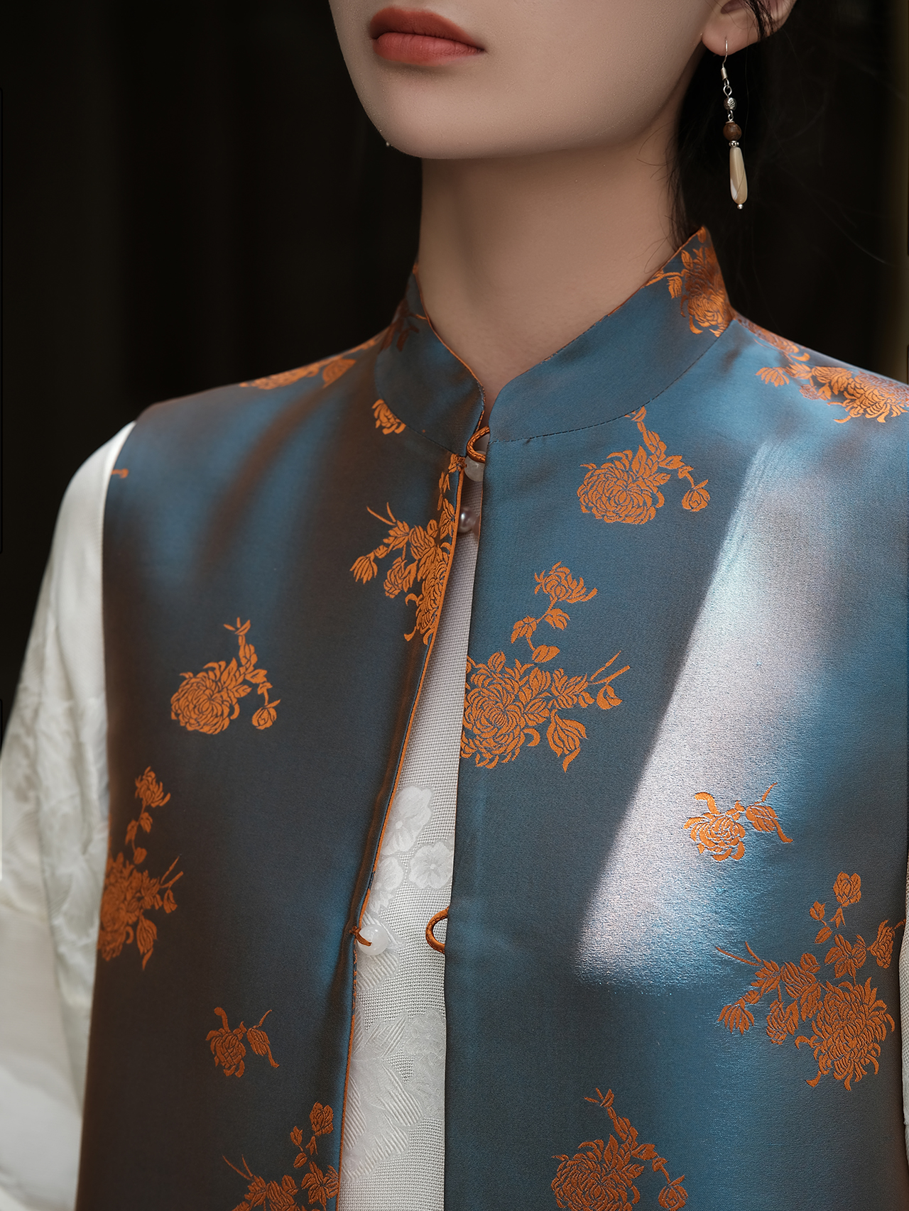 盛唐牡丹| 桑蚕丝花蕾缎双面穿马甲