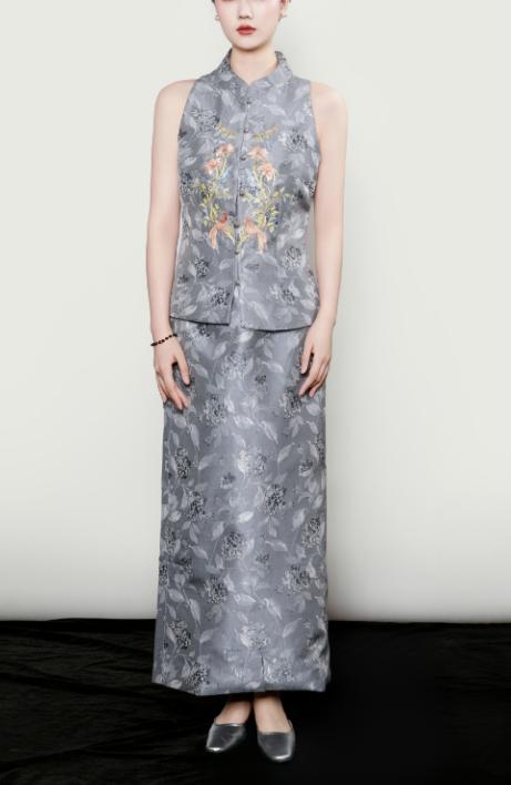 东方境X郭培 | 新中式提花修身直筒半身裙