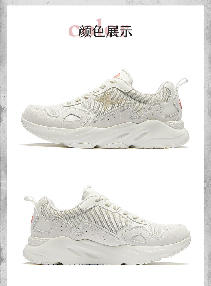 。【特步女鞋】.新款春夏季女老爹鞋跑步鞋休闲鞋透气网面白色881218329599