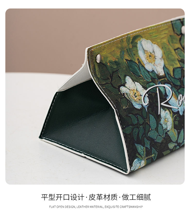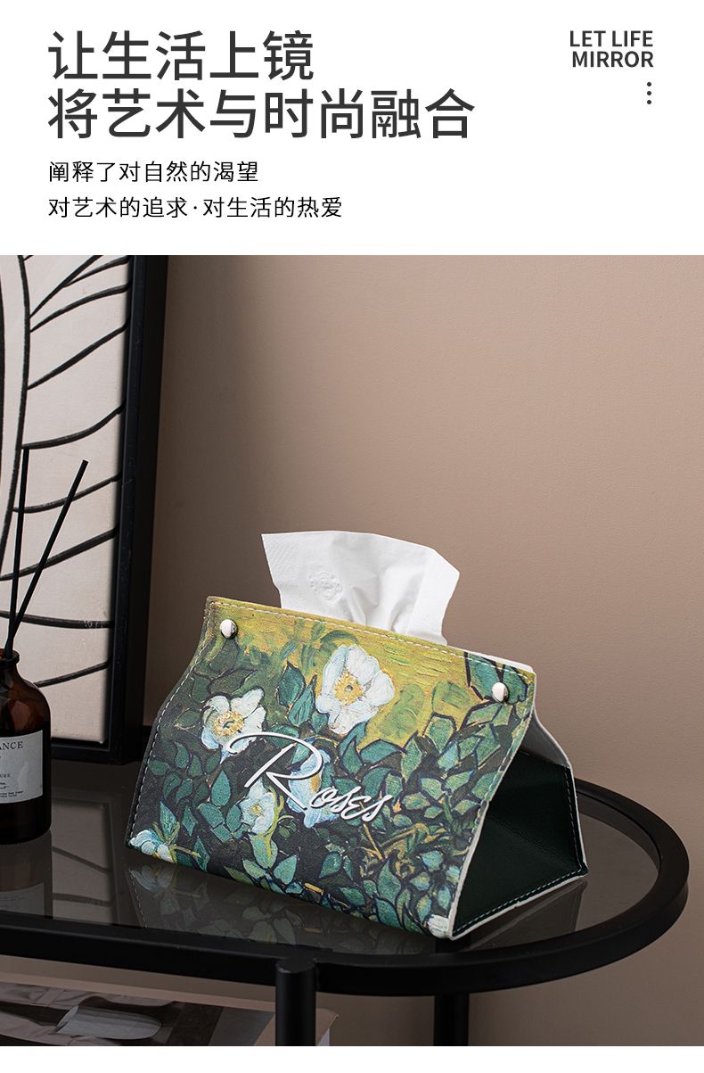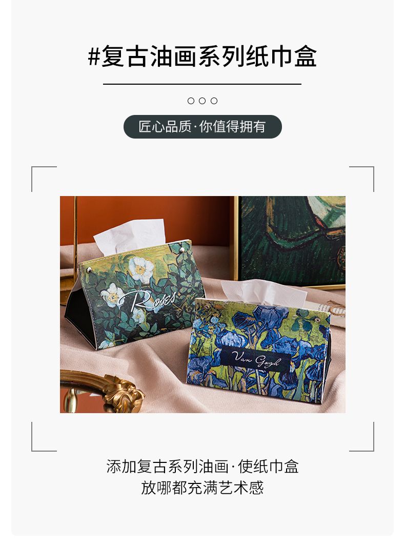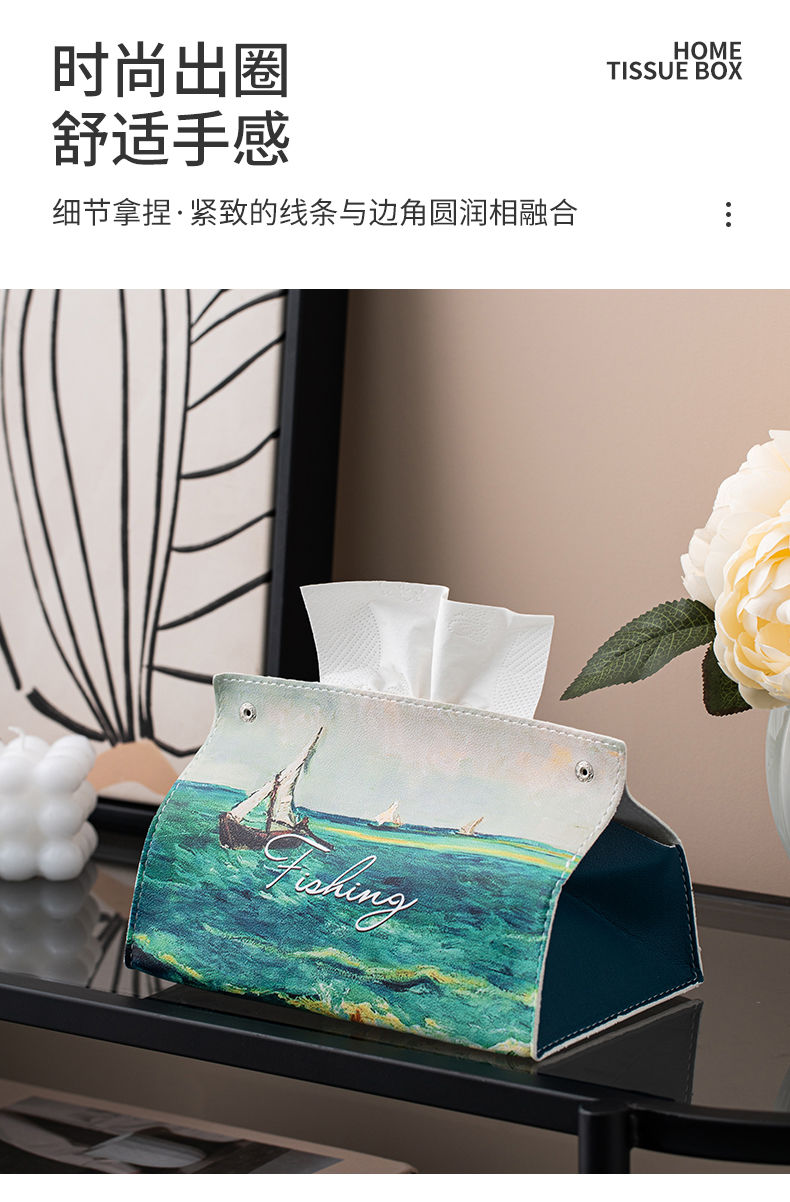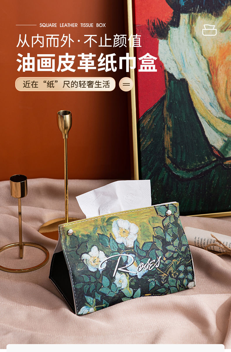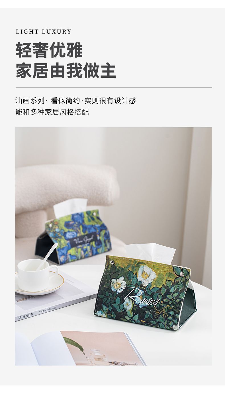 油画皮革纸巾盒轻奢创意家用客厅桌面茶几装饰抽纸盒餐巾纸收纳盒
