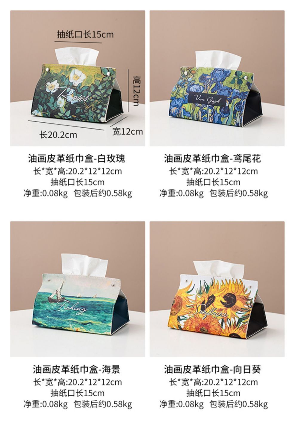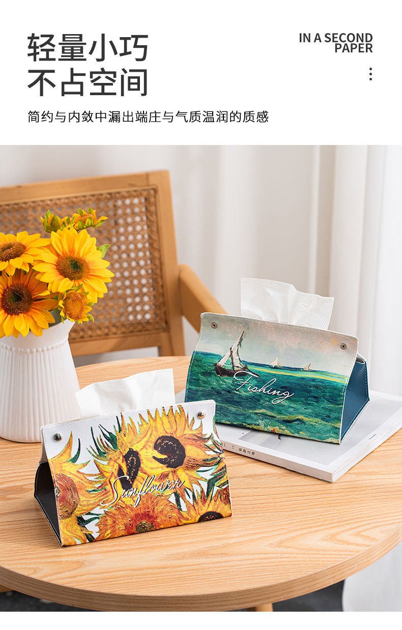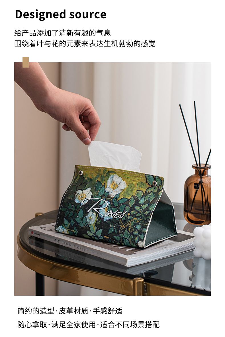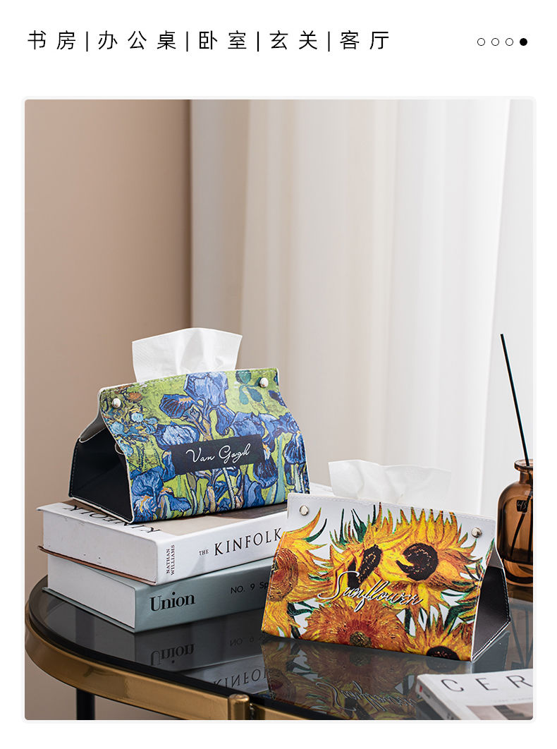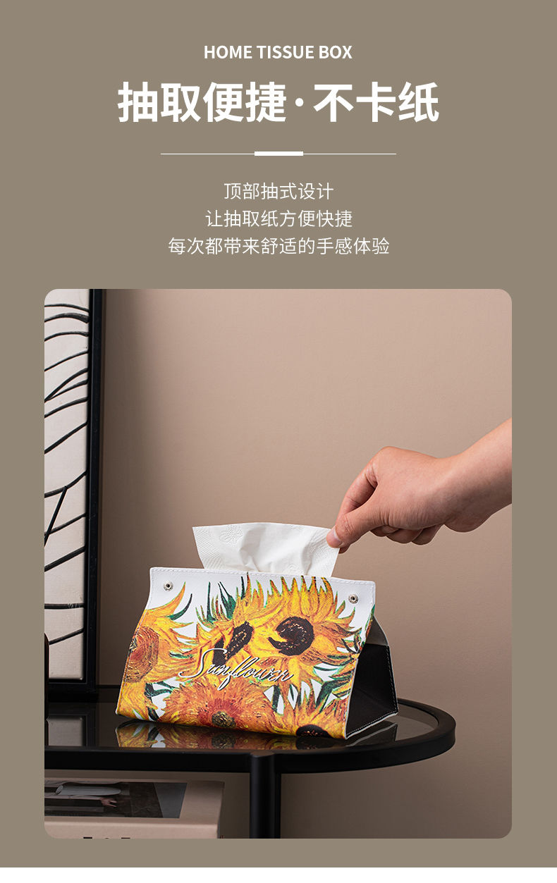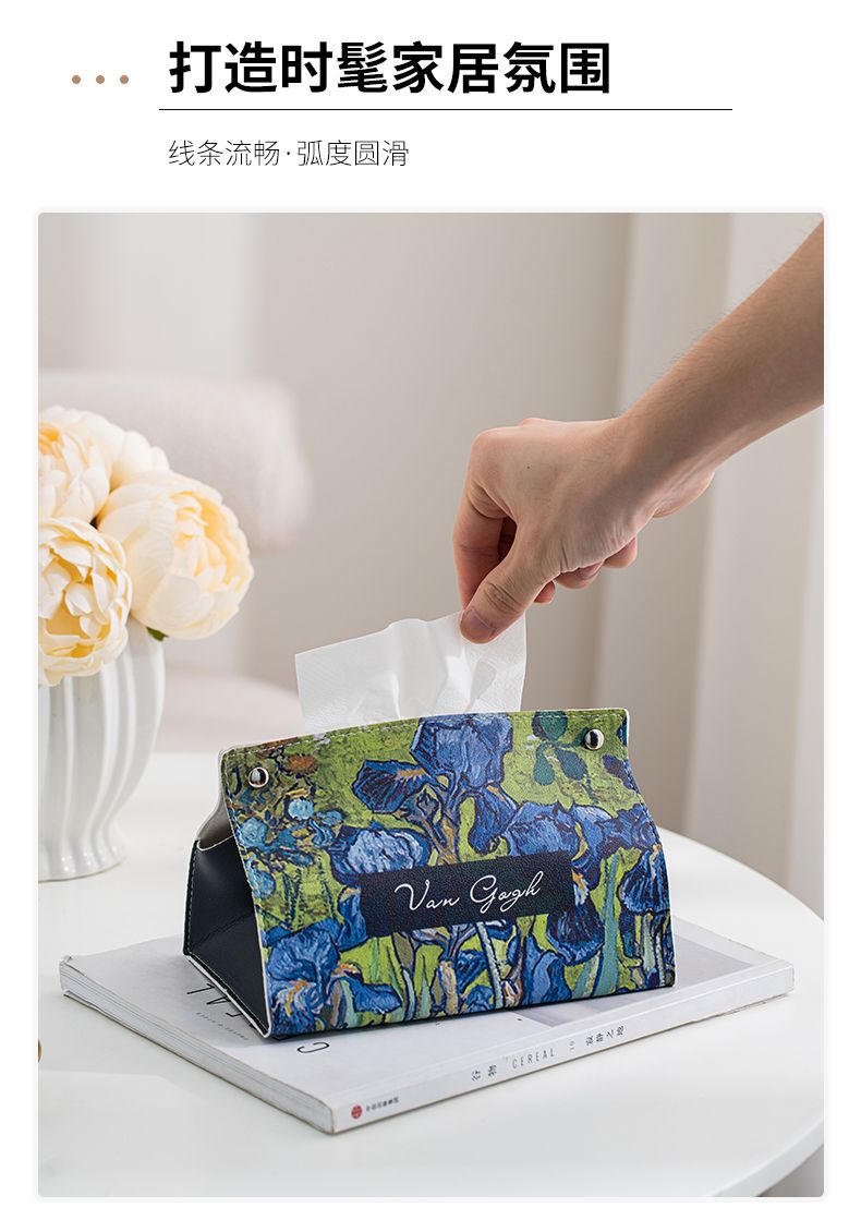 油画皮革纸巾盒轻奢创意家用客厅桌面茶几装饰抽纸盒餐巾纸收纳盒