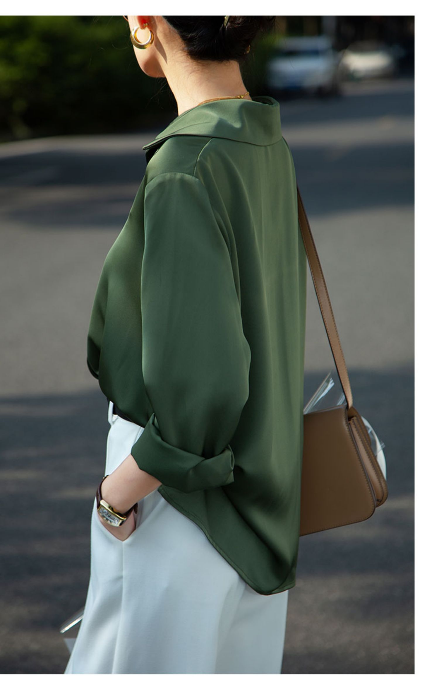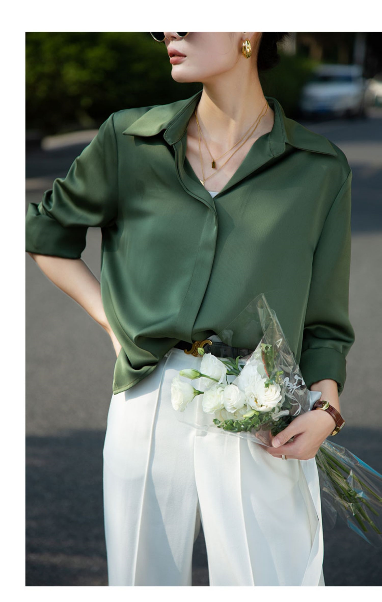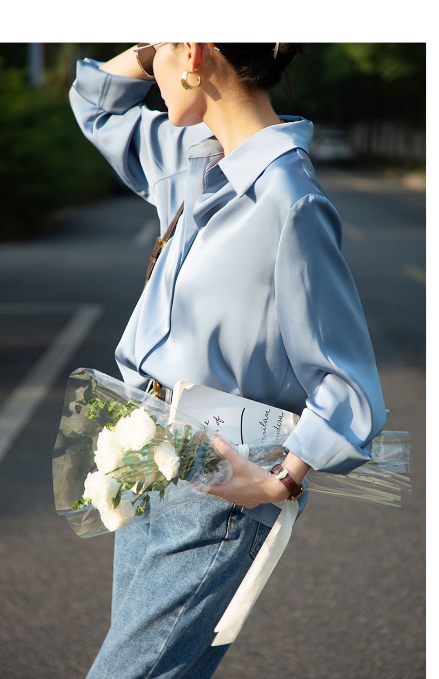 【时髦百搭】AILISCOCO 赫本风缎面翻领衬衣 仿醋酸面料 爽滑柔软 悬垂有型 单穿叠搭四季皆宜