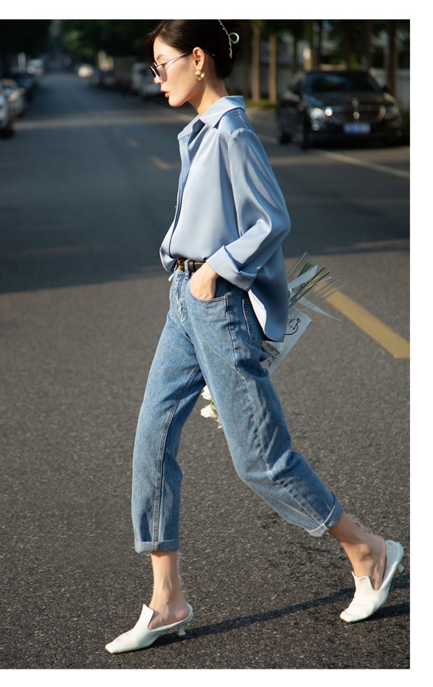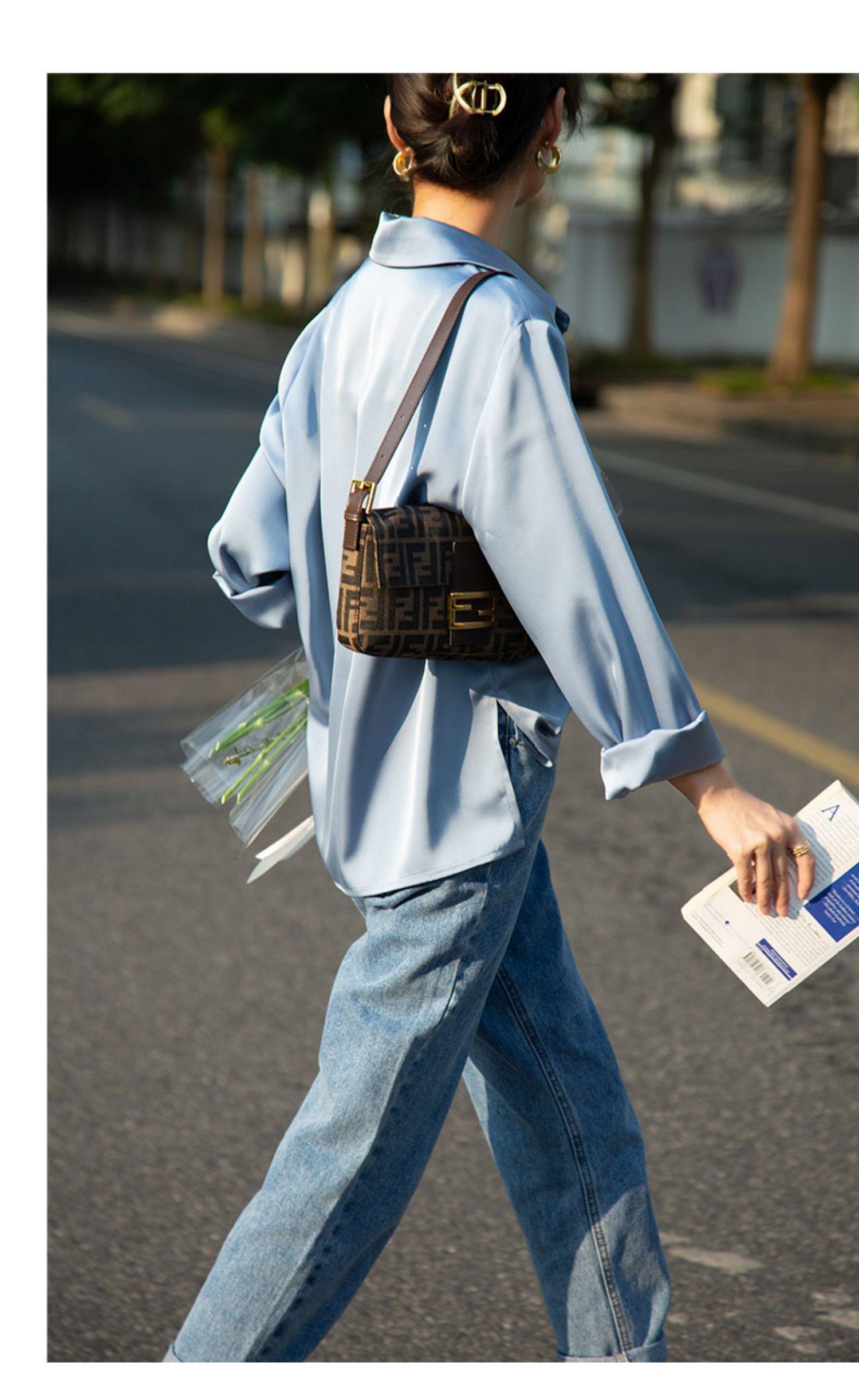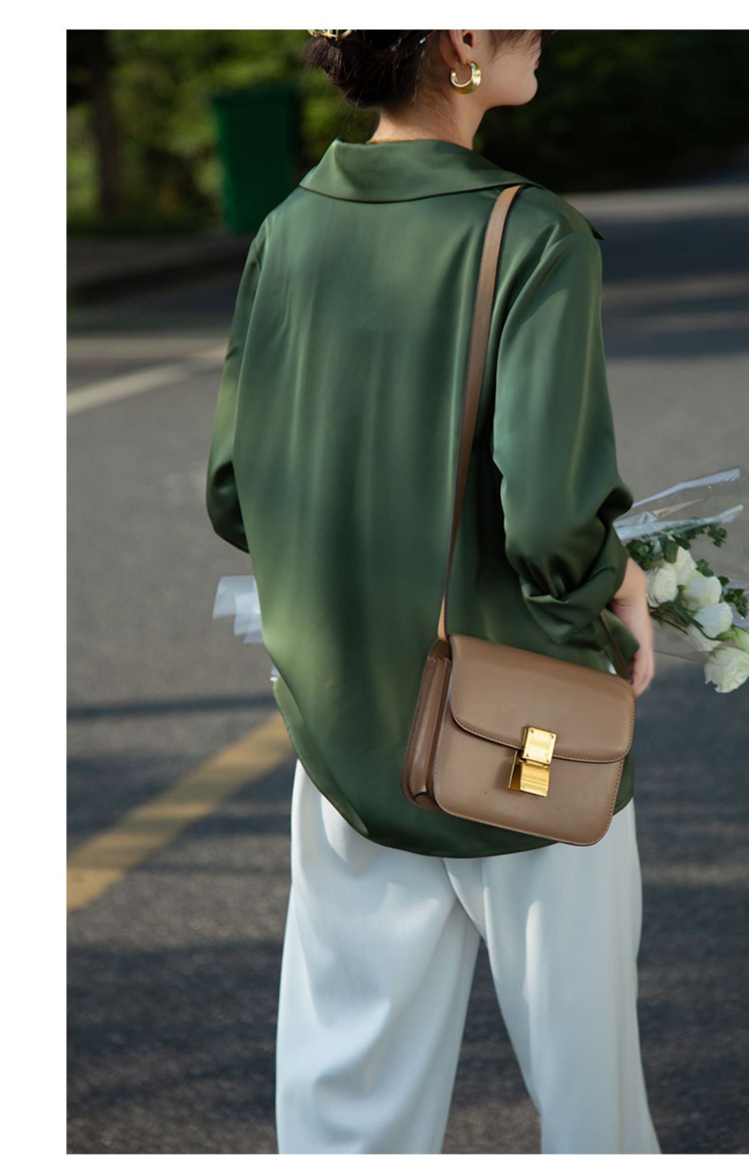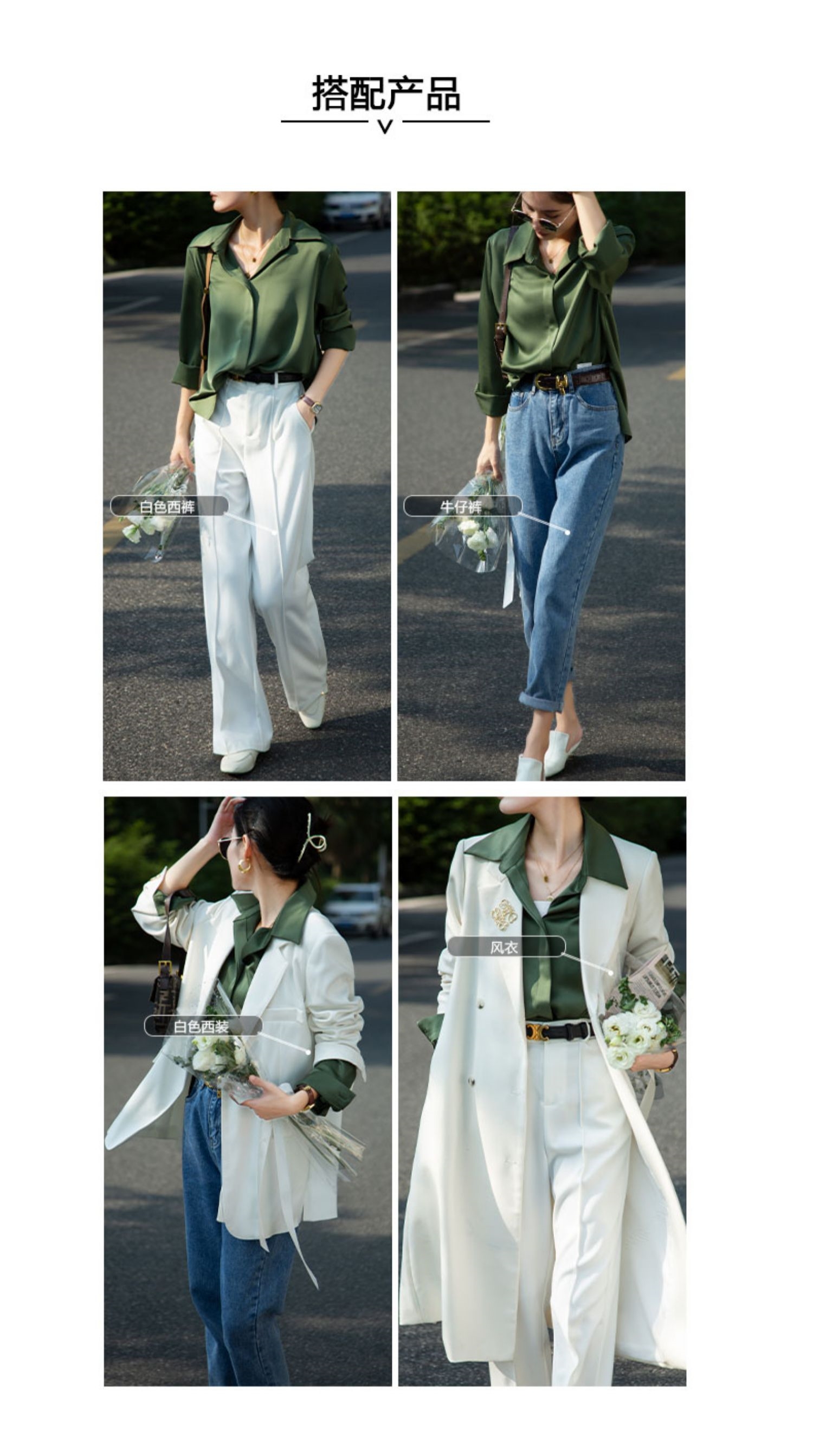 【时髦百搭】AILISCOCO 赫本风缎面翻领衬衣 仿醋酸面料 爽滑柔软 悬垂有型 单穿叠搭四季皆宜
