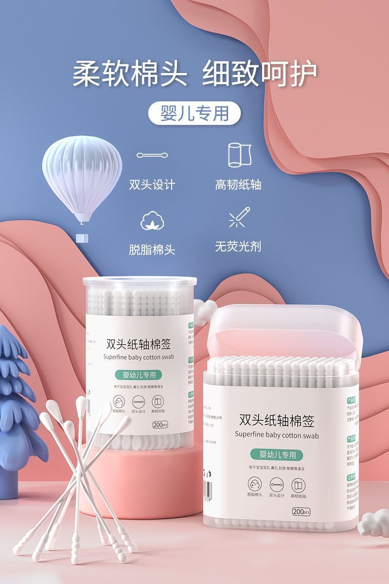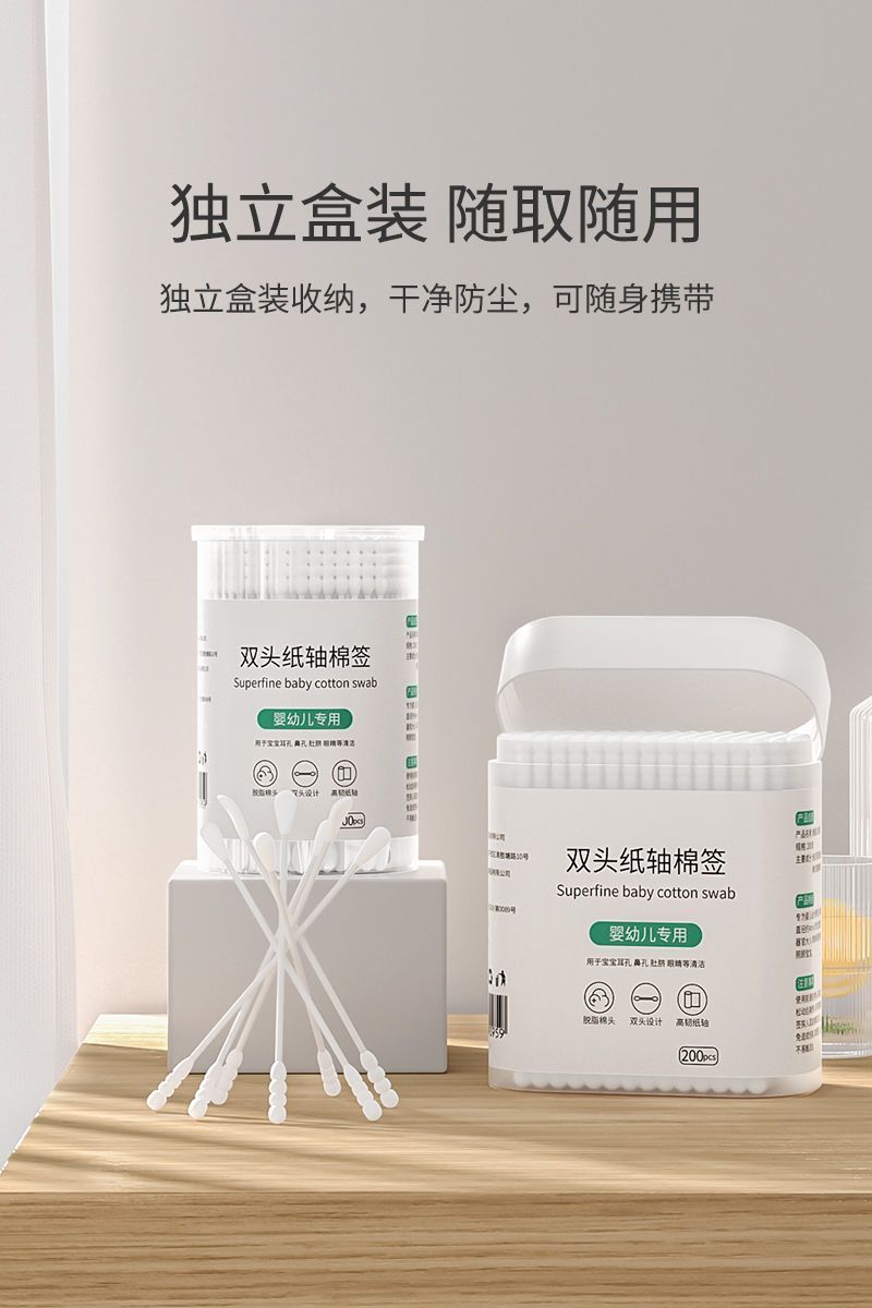 婴儿棉签耳勺掏耳鼻屎儿童婴幼新生儿宝宝专用超细小勺头棉棒盒装