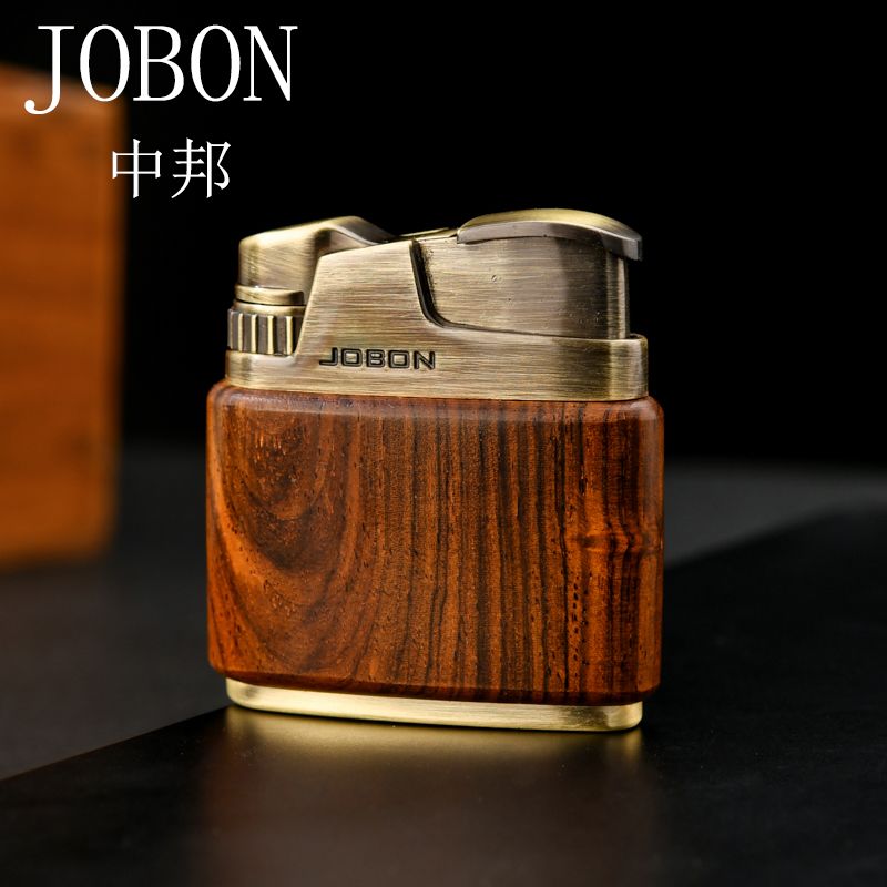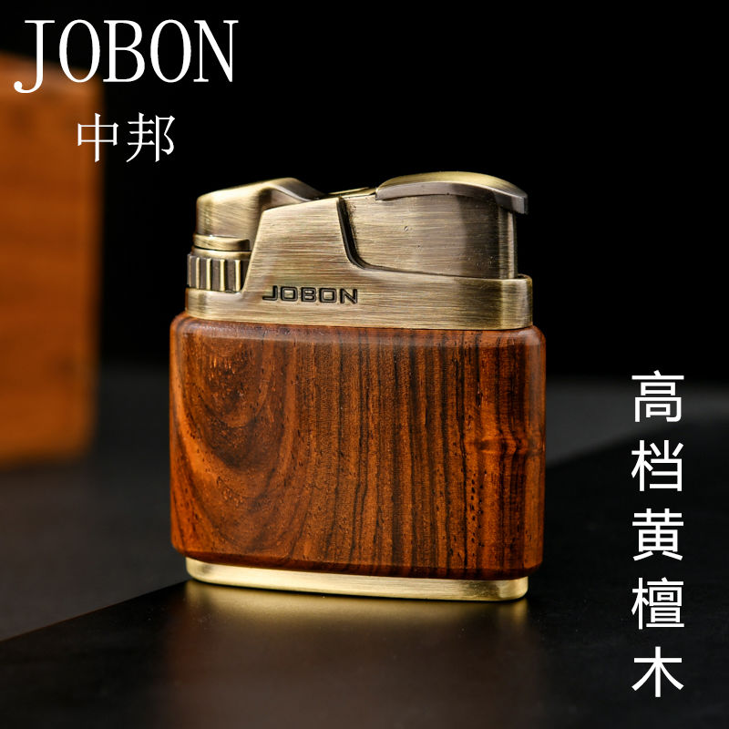JOBON中邦充气打火机黄檀木高档送礼盘玩耐摔防风木质打火机刻字