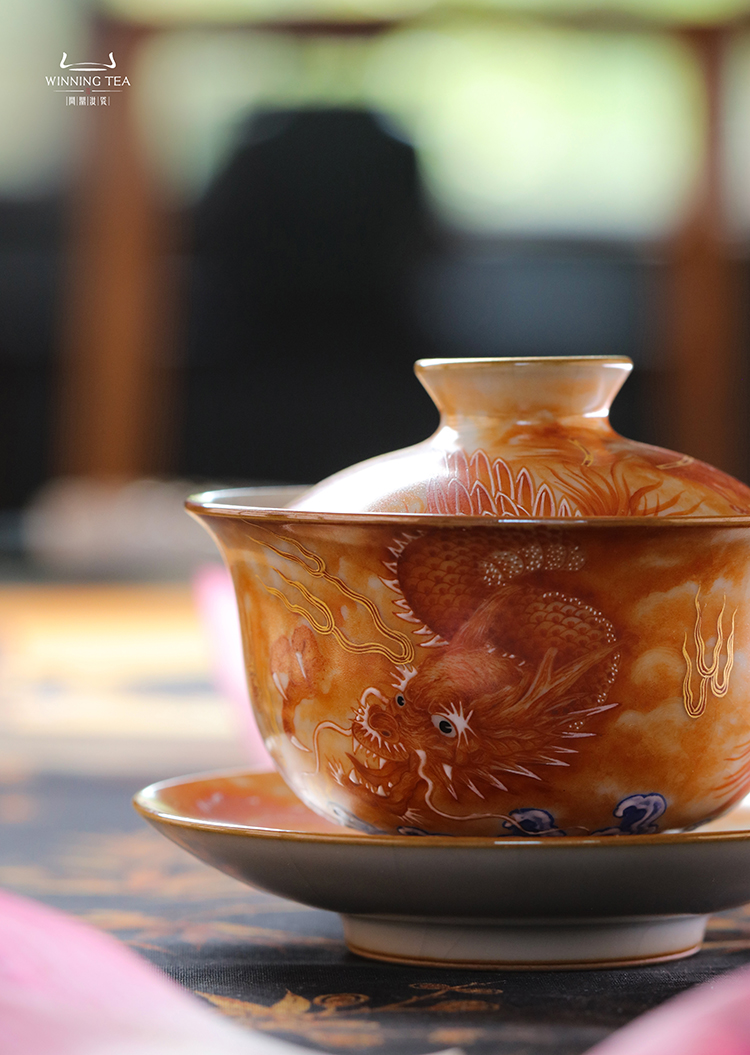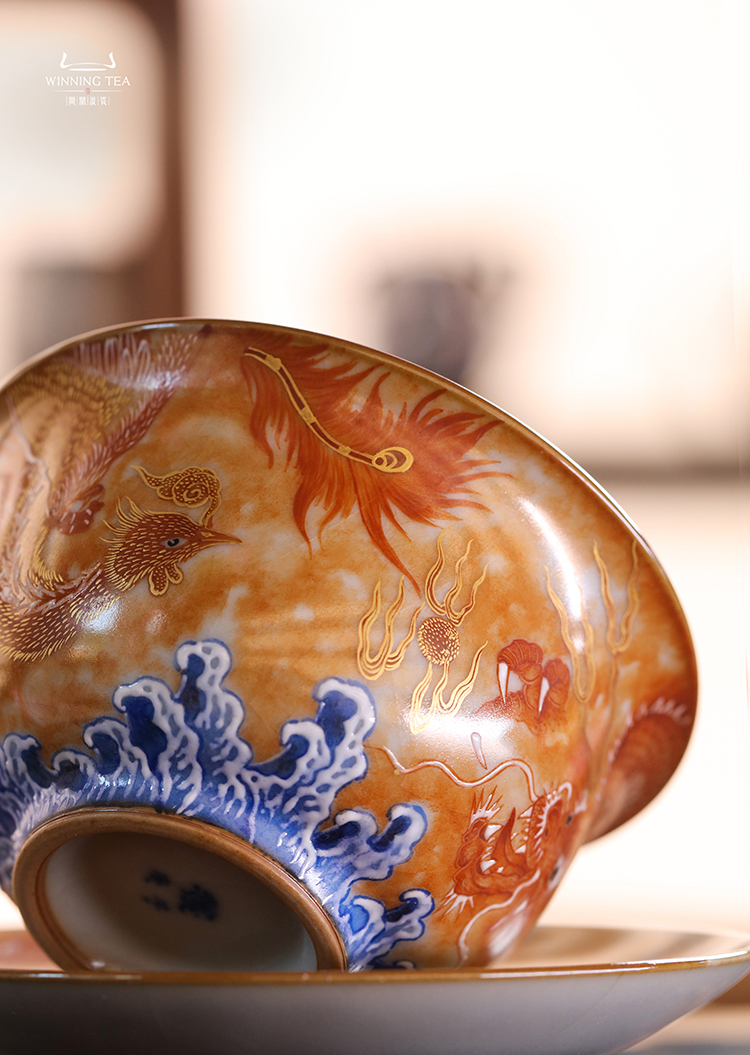 问鼎汝瓷鼎峰系列月白正德盖碗(梵红龙凤)(缺货)