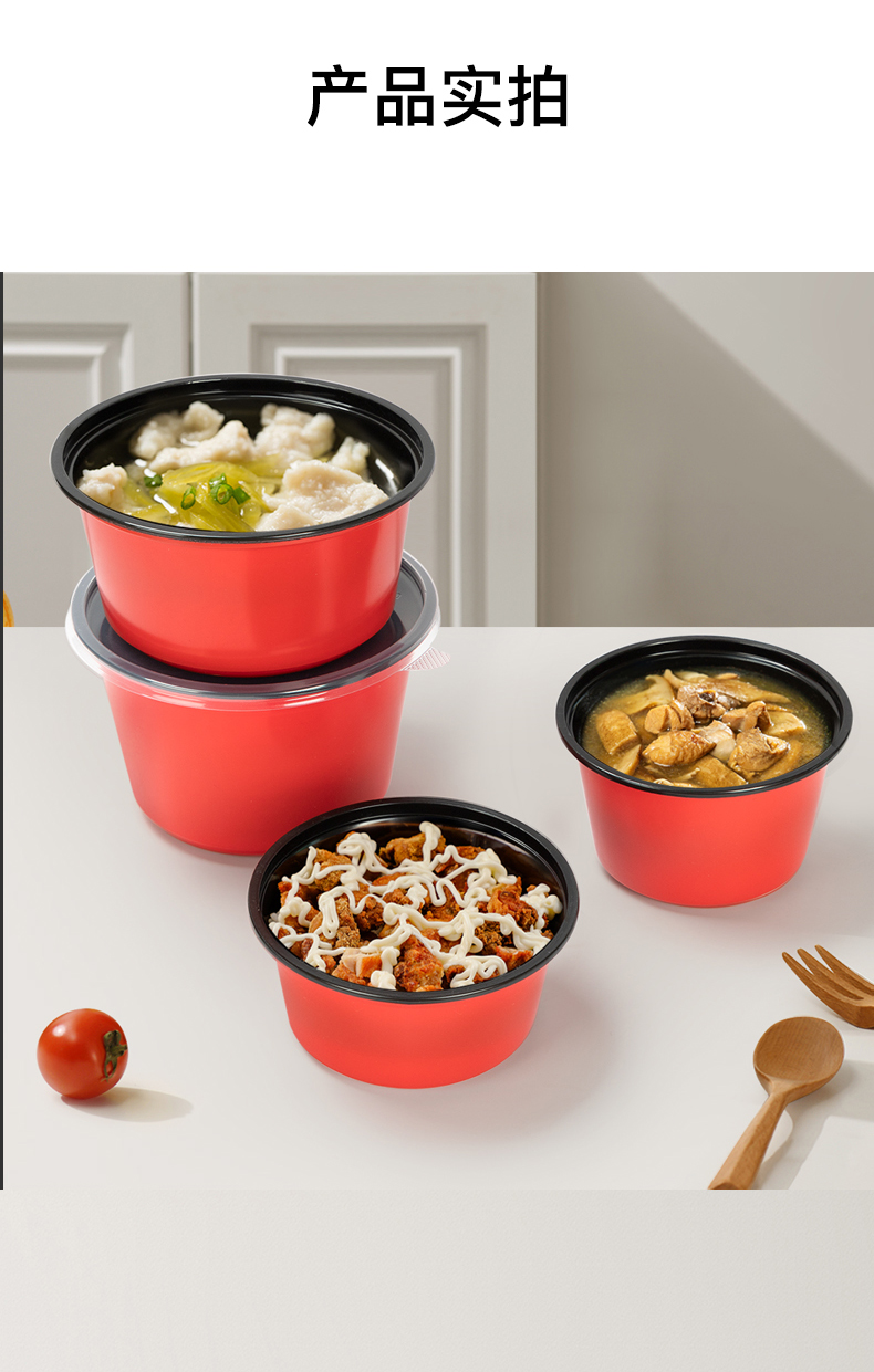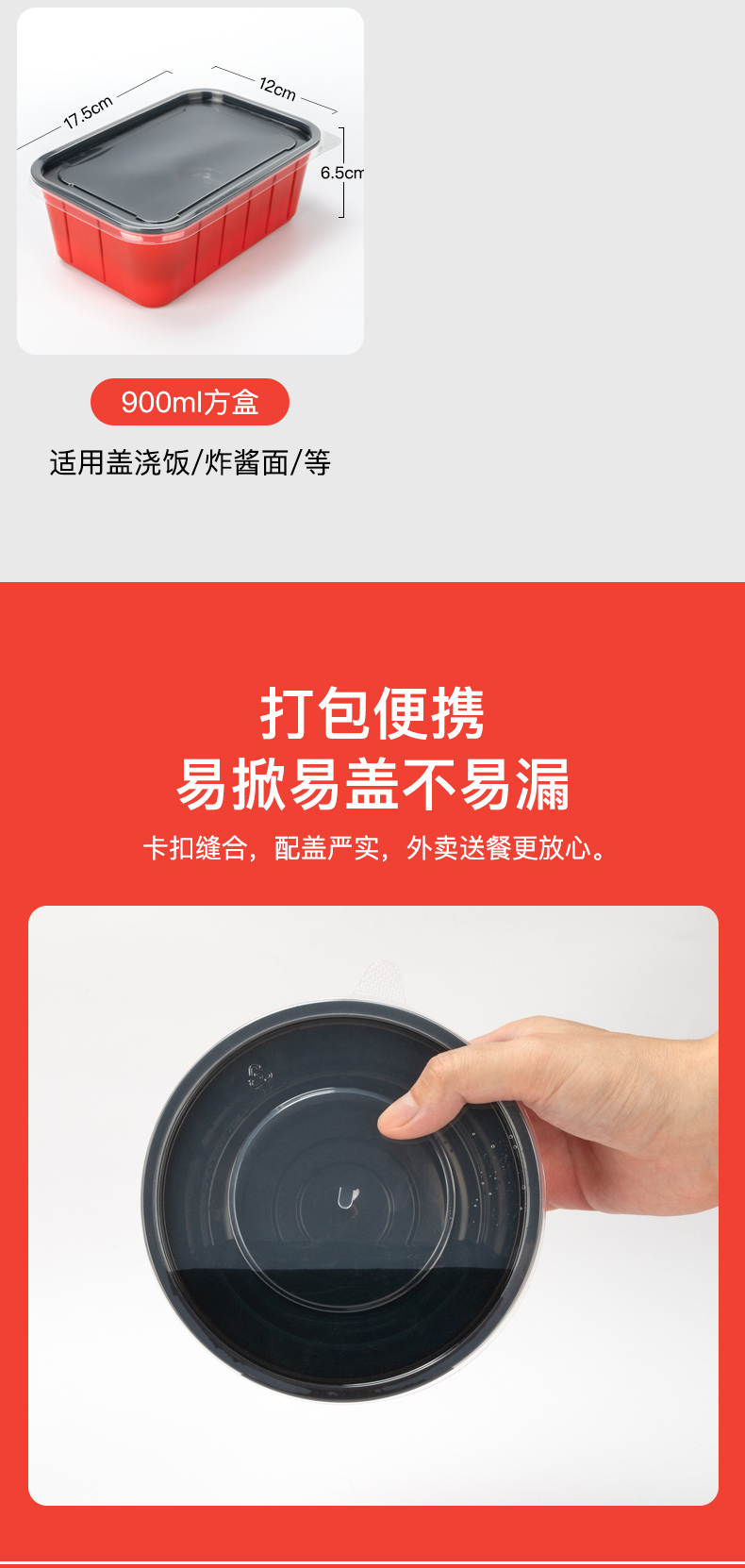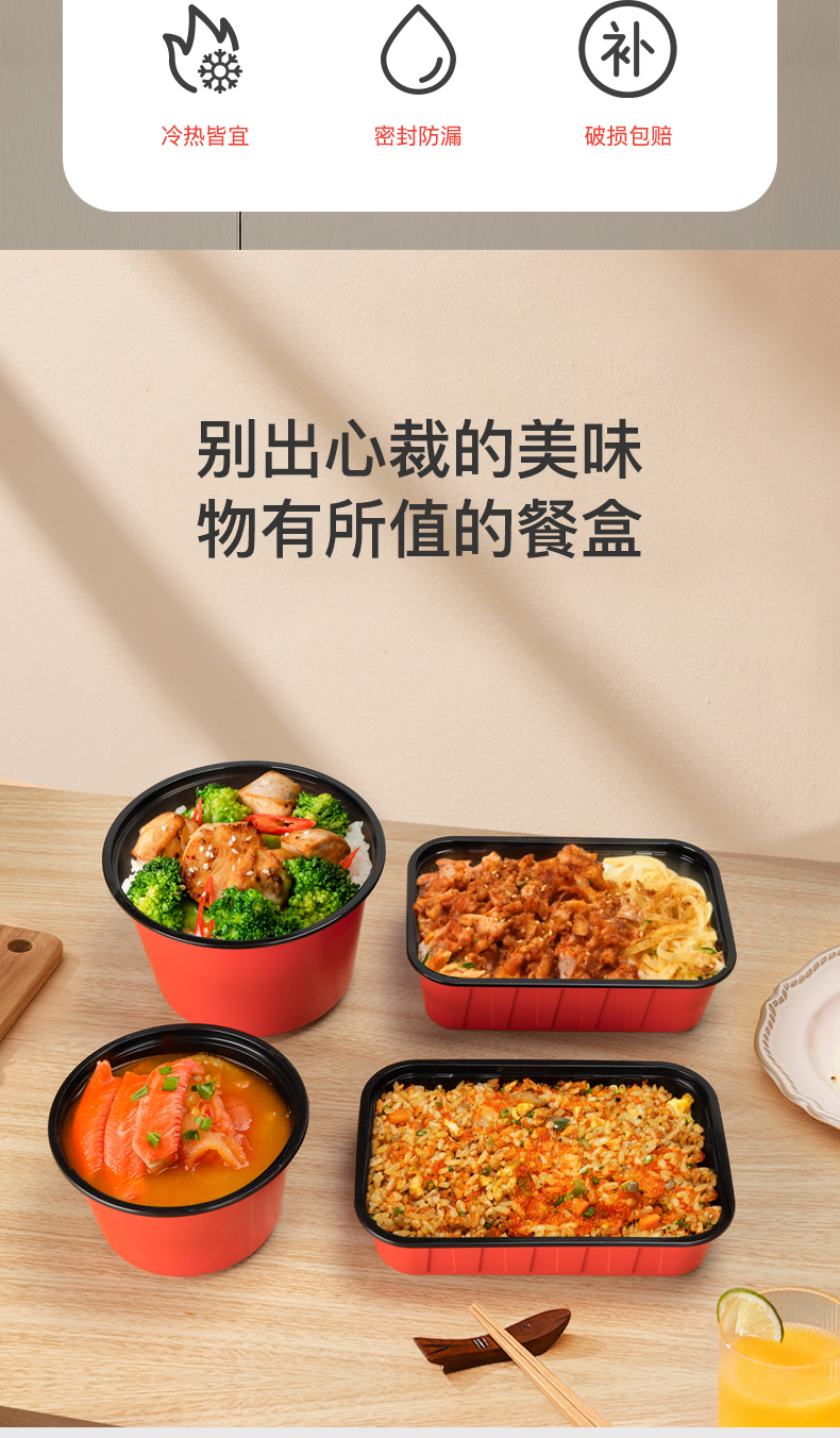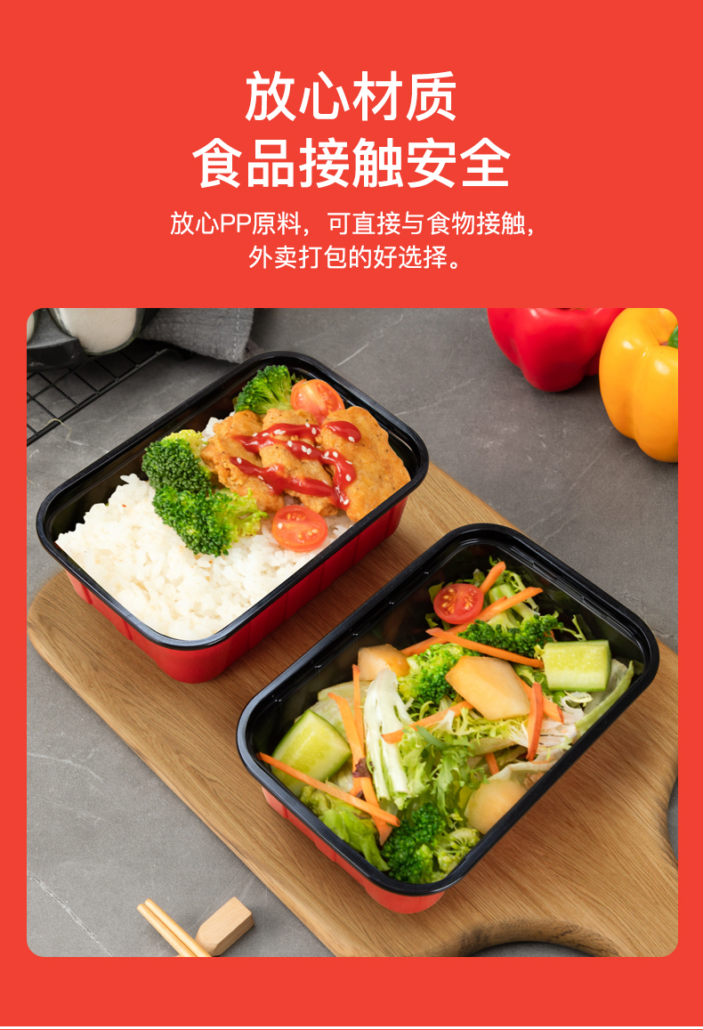 喇叭花一次性饭盒加厚pp塑料圆碗方盒黑红外卖盒快餐盒汤碗密封不漏带盖