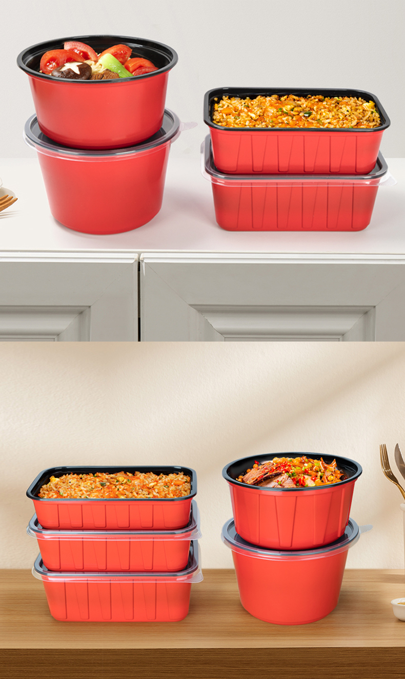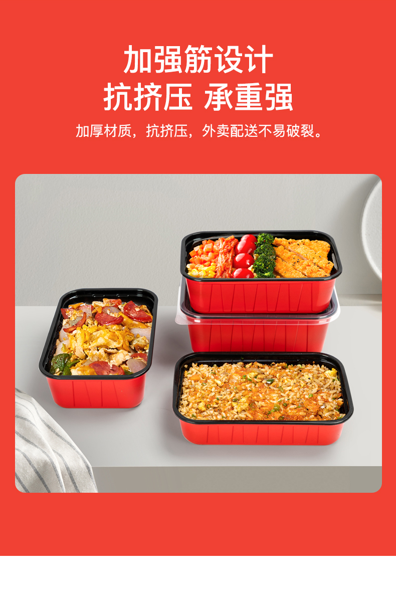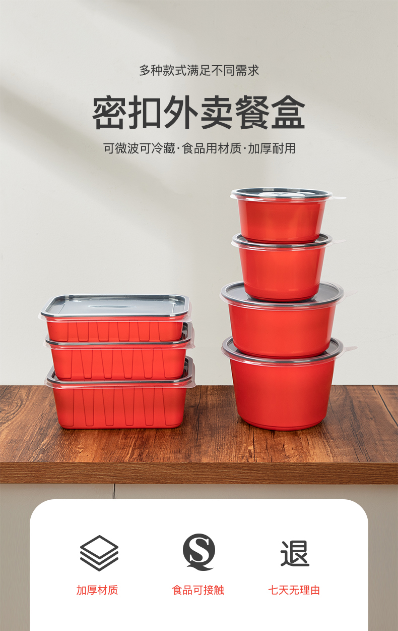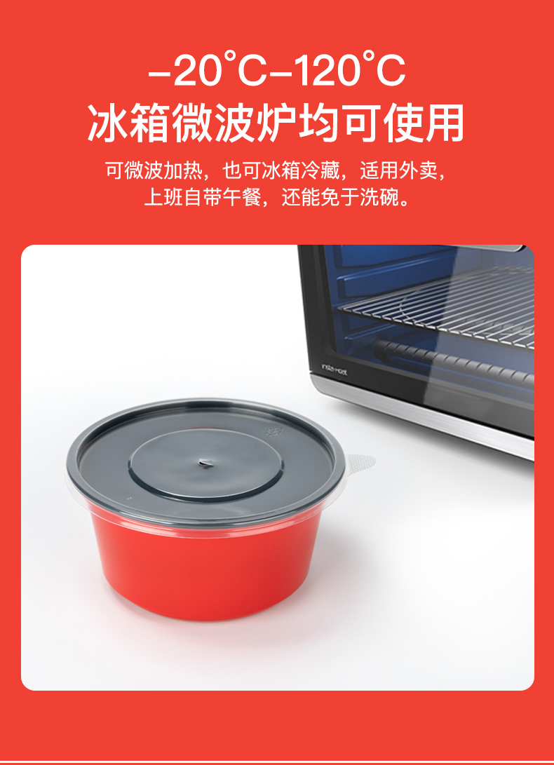 喇叭花一次性饭盒加厚pp塑料圆碗方盒黑红外卖盒快餐盒汤碗密封不漏带盖