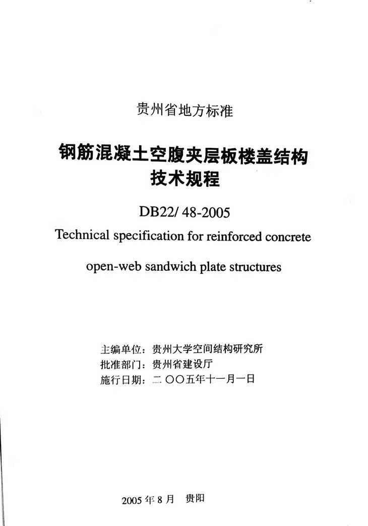 DB22/48-2005钢筋混凝土空腹夹层板楼盖结构技术规程