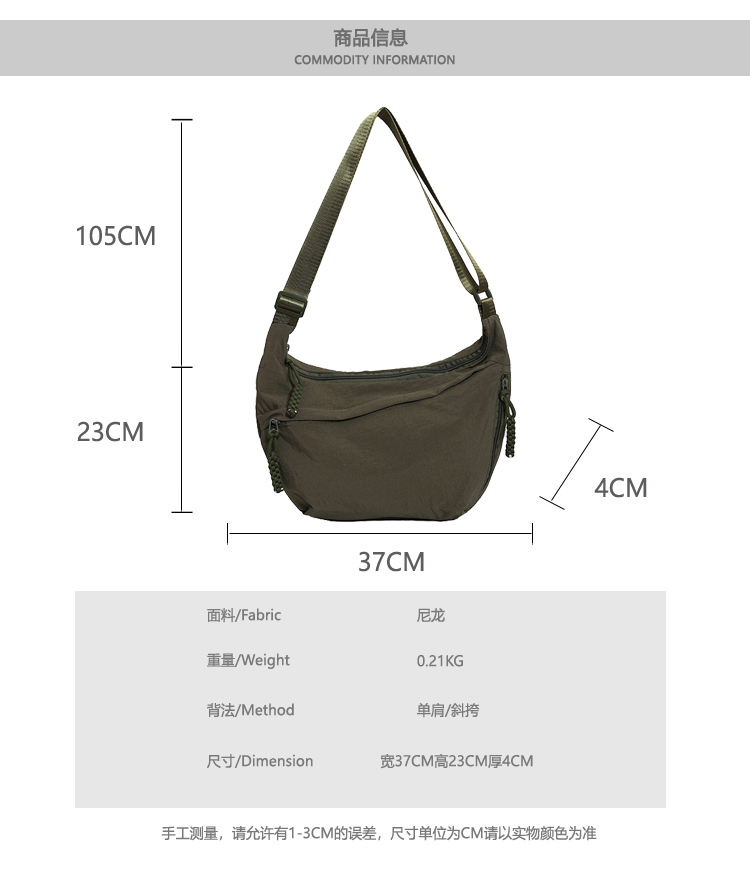 【品名】UYOKU 百搭潮流个性单肩包 牛角包 日常简约 尼龙斜挎包 5色可选 【规格】黑色、米白色、橘色、军绿色、蓝色 【产地】国内 【材质】尼龙 【发货包装】独立包装 【发货地】浙江 【发货快递】中通 【不发货区域】新疆、西藏、港澳台 【发货时效】48-72小时,周末节假日顺延 |