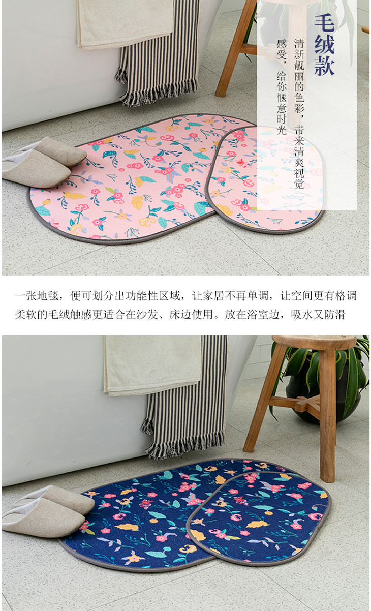 又夕月花朵毛绒丝圈地垫