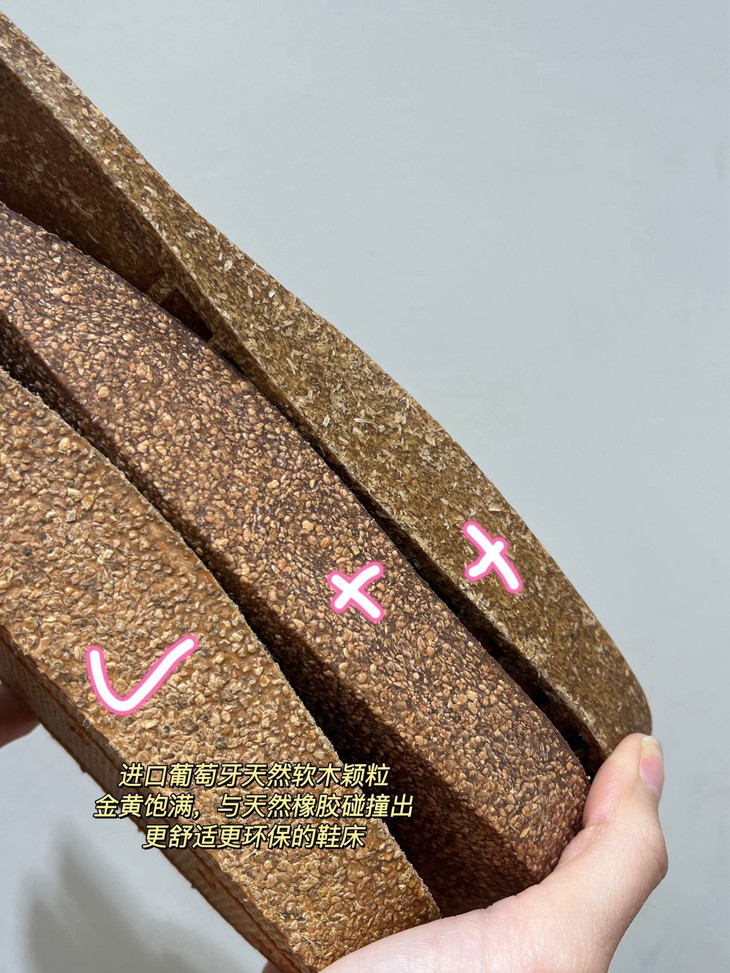 我们的鞋床不是市面上仿的塑料 而是真正的天然软木以及乳胶材质,整个重量恰好满足人体足部承重的最佳状态,暴走都不累