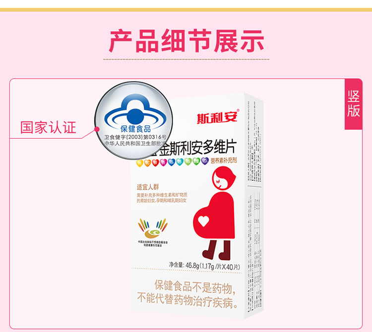 金斯利安多维叶酸片40片 孕前孕中孕妇维生素b族维生素c维生素d